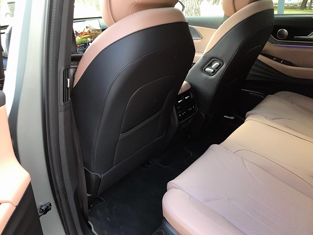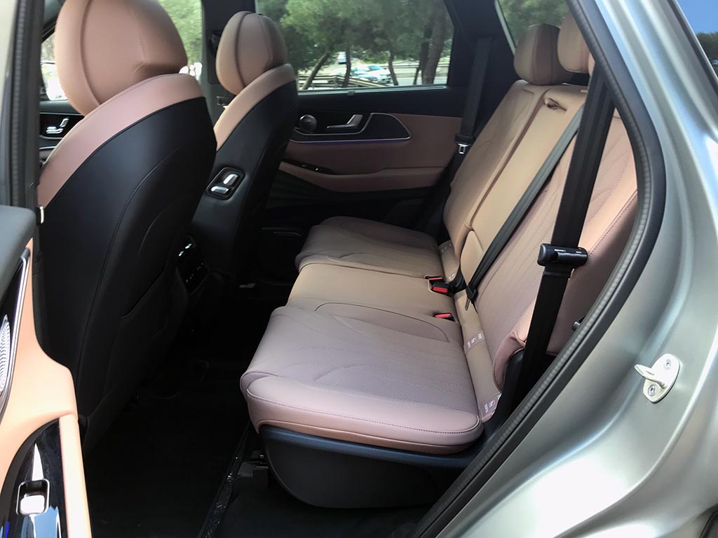 La segunda fila de asientos es también muy cómoda, cuentan con regulación eléctrica, desplazamiento longitudinal de hasta 16 cm, son asientos calefactados, ventilados, (se maneja todo desde unos botones en las puertas) y para un confort máximo se pueden reclinar los respaldos y cuenta con climatizador independiente.