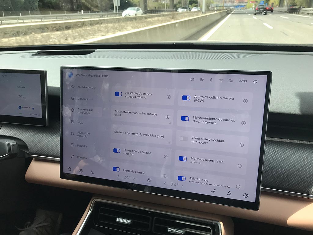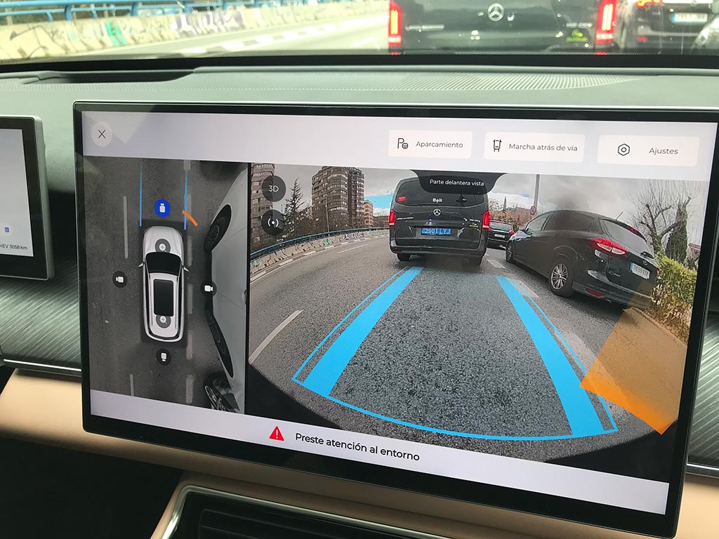 El EBRO s900 PHEV incorpora 26 sistemas de asistencia ADAS, superando a sus hermanos de marca. Entre ellos se cuentan el asistente de cambio de carril, aviso de salida involuntaria de carril, asistencia marcha atrás, frenada automática de emergencia, alerta trasera de tráfico cruzado o control de crucero adaptativo. Y como novedad incorpora un asistente de aparcamiento autónomo y un asistente de recorrido inverso, que nos permite regresar sobre nuestros pasos al memorizar los últimos 50 metros de recorrido.