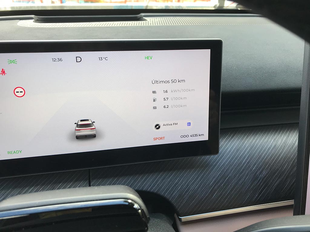 EBRO homologa 140 km en modo 100% cero emisiones: Durante nuestra prueba no fuimos capaces de dejar la batería por debajo del 17%. Si bien es cierto, que casi alcanzamos los 100 km. Cuando se combinaba con el motor de combustión y con su marcada tendencia a ir en eléctrico, la media de consumo estuvo por debajo de los 6 l/100 km. Sin baterías, el consumo se va por encima de los 8 L/100 km.