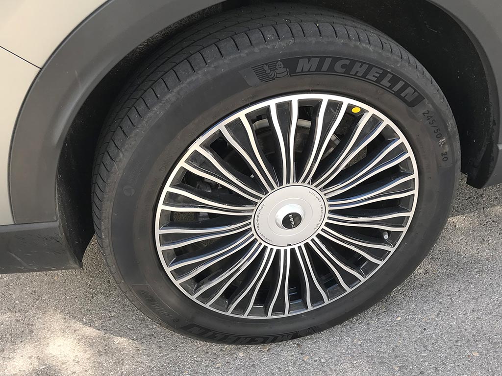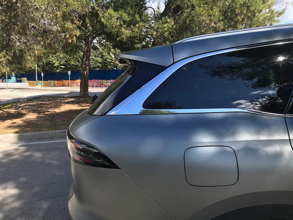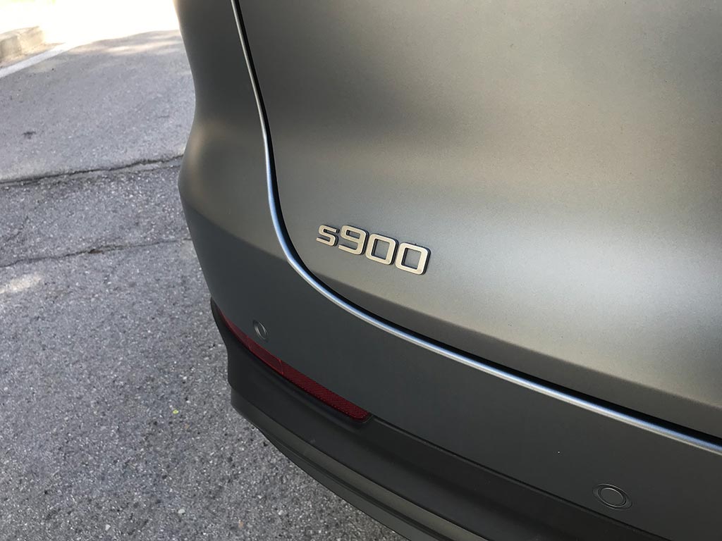Las llantas, de nuevo diseño son de 20 pulgadas de serie, cristales tintados y manetas eléctricas completamente enrasadas con la carrocería, aportan un toque de distinción al s900. En la trasera, una firma lumínica que cruza de lado a lado del portón del maletero y en la parte superior un alerón integrado, y en la parte inferior el difusor en plástico negro.