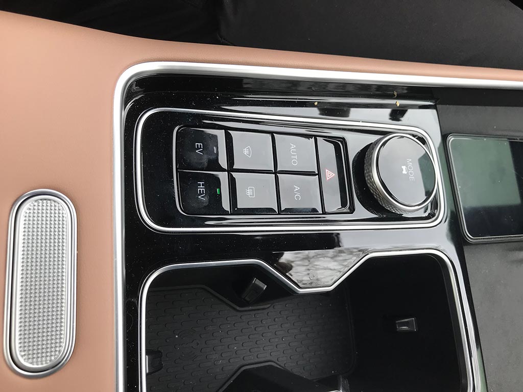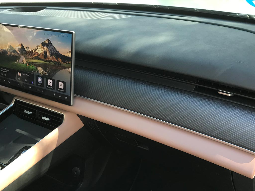 Vamos a la pantalla táctil central de 15,6 pulgadas, que incorpora un avanzado sistema multimedia, compatible con Android Auto y Apple CarPlay inalámbricos. La pantalla central, táctil integra la mayoría de las funciones del vehículo, aunque conserva algunos botones físicos, lo que es muy de agradecer. En la consola central, dos espacios con sistema de carga inalámbrica ventilada de 50W en el de la izquierda. Un mando giratorio para los modos de conducción (ECO, Sport y Normal) y uno de los cambios donde antes estaba el botón del volumen, ahora se convierte en el botón del modo de conducción EV o HEV.