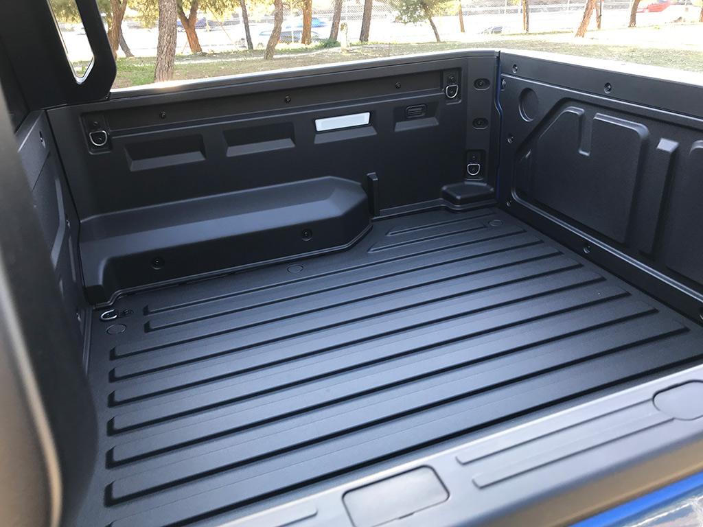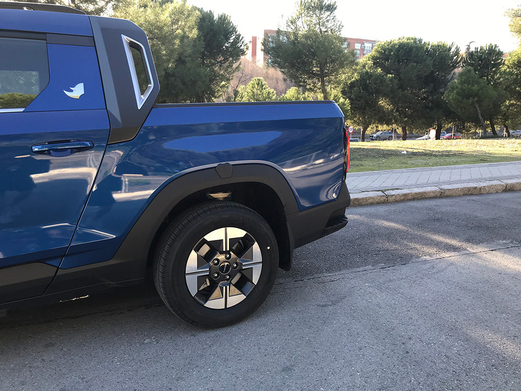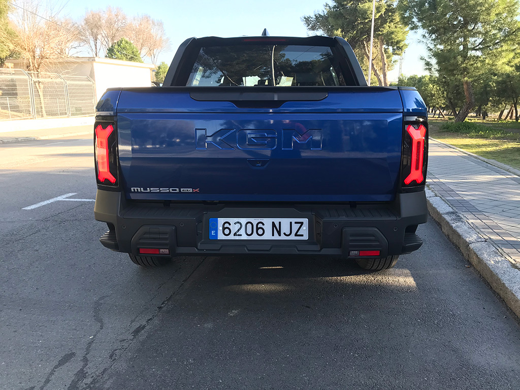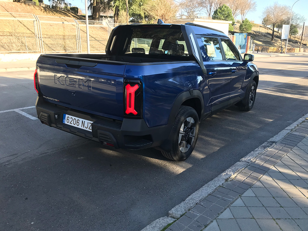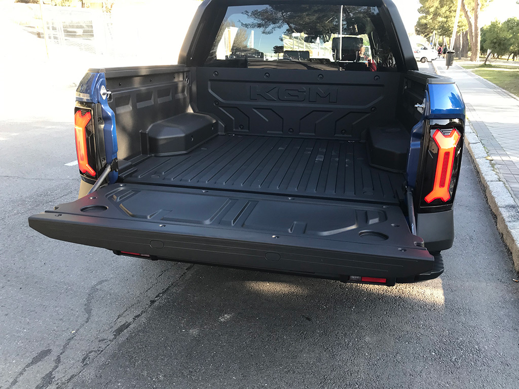 En la parte trasera, el nombre de KGM en gran tamaño, y una especie de escalón en cada extremo de la trasera, que ayuda a subir a la caja. Detalles como estos son muy de agradecer.