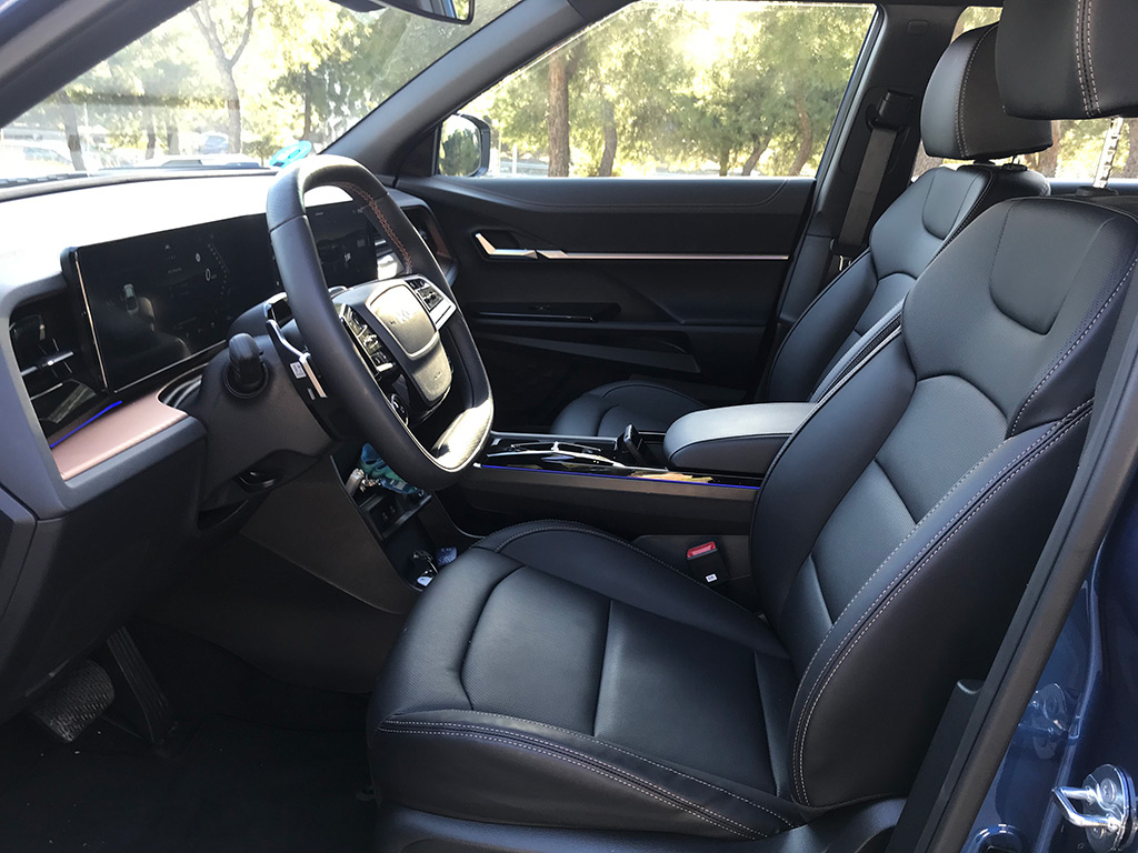 Los asientos delanteros son muy cómodos, regulables eléctricamente, además de ventilados y calefactables. El volante es de un buen tamaño, con buen agarre, achatado en la parte superior e inferior, multifunción y se regula en altura y profundidad.