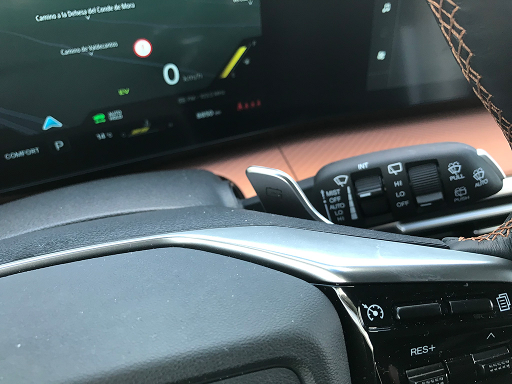En trayectos revirados, y con el modo SPORT activado, ofrece aplomo y apenas tiene inercias y una frenada muy efectiva; pero no nos aventuremos a más, no vaya a ser que nos demos un susto de los buenos. Por último comentar que incorpora tres niveles de regeneración de la batería (mediante levas en el volante) que permiten modular la retención del vehículo, e incluso se puede conducir con un solo pedal.