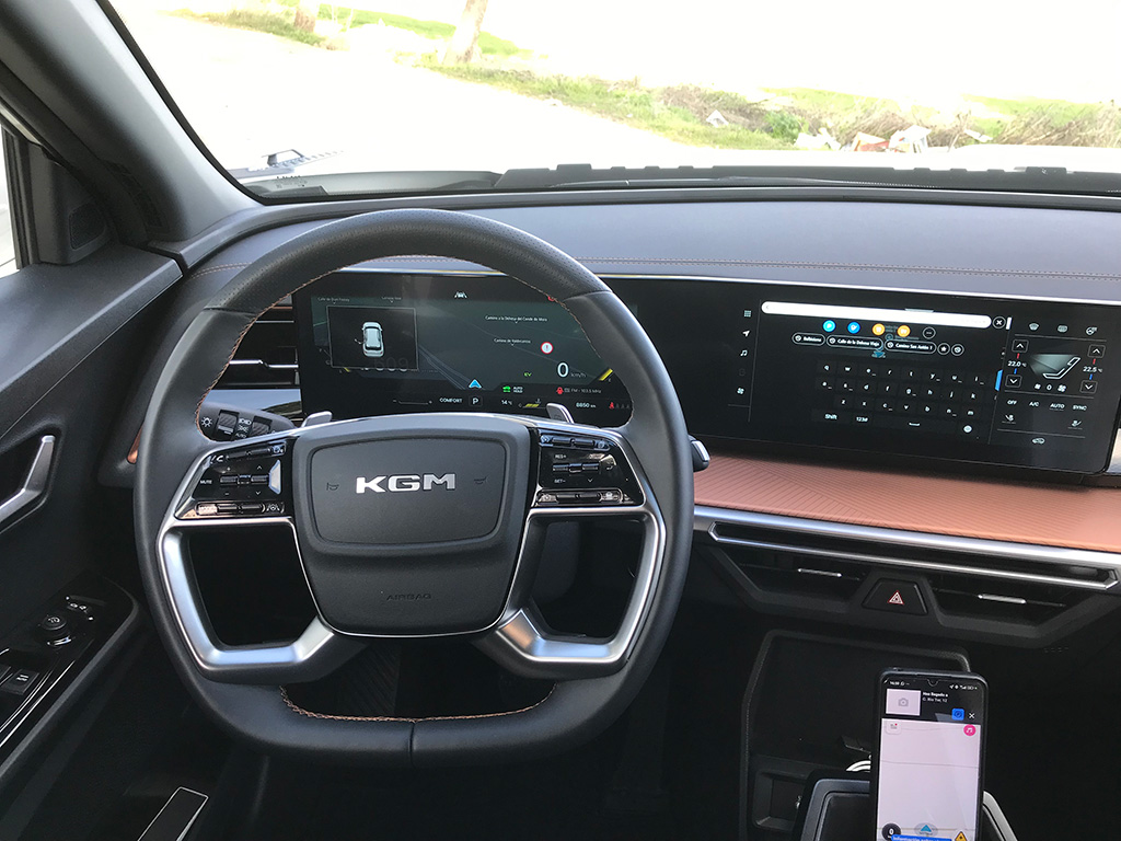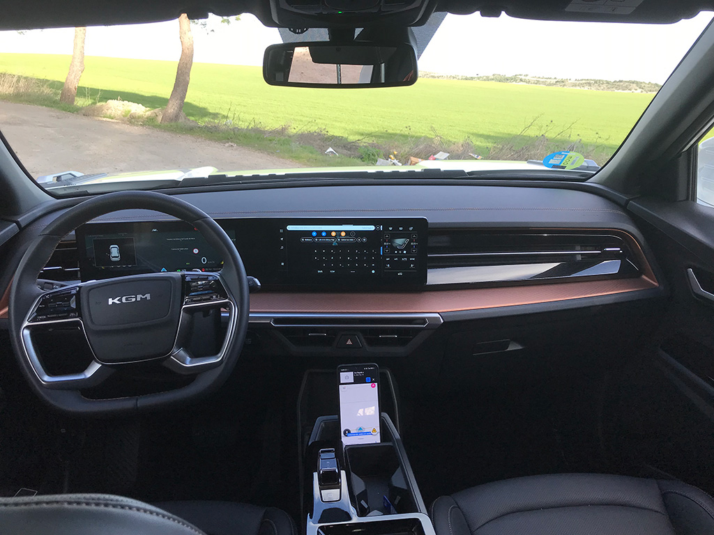 En cuanto al sistema de infoentretenimiento, es sencillo, con menús claros, aunque para quitar algún soniquete hay que bucear. El navegador corre a cargo de TomTom (para mi lo más pobre de este KGM), y permite conexión Apple CarPlay y Android Auto, aunque no de forma inalámbrica (uff).