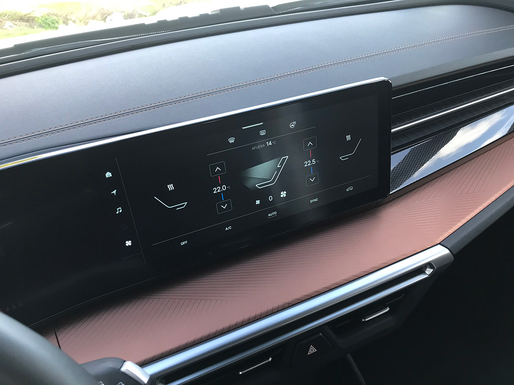 La consola central presenta un diseño flotante, creando un espacio abierto en la parte baja en el que se integran huecos de almacenamiento y un cargador inalámbrico para smartphone, mientras que el resto del habitáculo se beneficia de iluminación ambiental LED y múltiples tomas USB-C.
