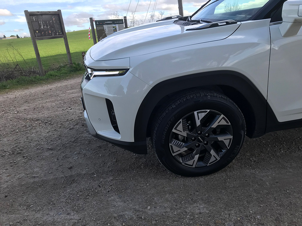 Es tracción delantera, no lleva ningún tipo de ayuda para el campo, pero aún así, con los 18 cm de altura libre con respecto al suelo y unas cotas off-Road de 17,8º de ángulo de entrada, 21,8º de ángulo de salida y 18,6º de ángulo ventral, el Torres HEV se permite el lujo de permite sortear muchos imprevistos del camino.