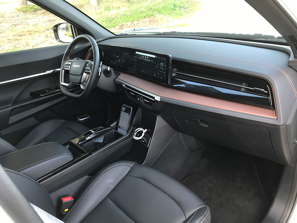 Un interior que respecto a la primera unidad que probamos del KGM Torres, ha recibido actualizaciones y dado un enorme salto de calidad en materiales y a nivel tecnológico. Sigue siendo enorme, con espacio más que de sobra para cinco ocupantes, y con una sensación de calidad bastante buena. Buena mezcla de plásticos duros en las partes bajas del habitáculo y otros con un mullido más agradable.