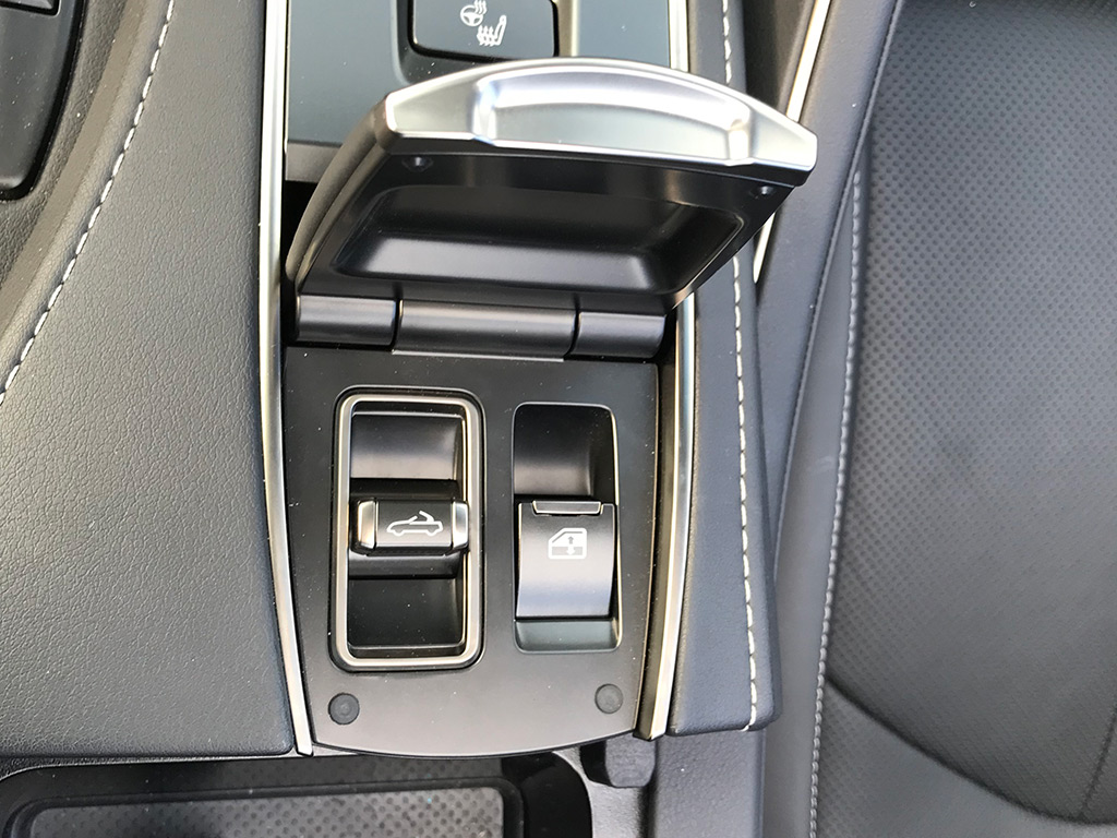 Entre ambos asientos con tramos la palanca de cambio y a la derecha una serie de botones entre los que están, cámara, manejo del audio o la calefacción (además de un compartimento secreto del accionado de la capota).
