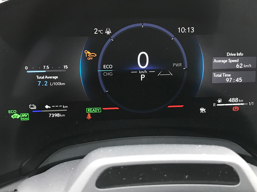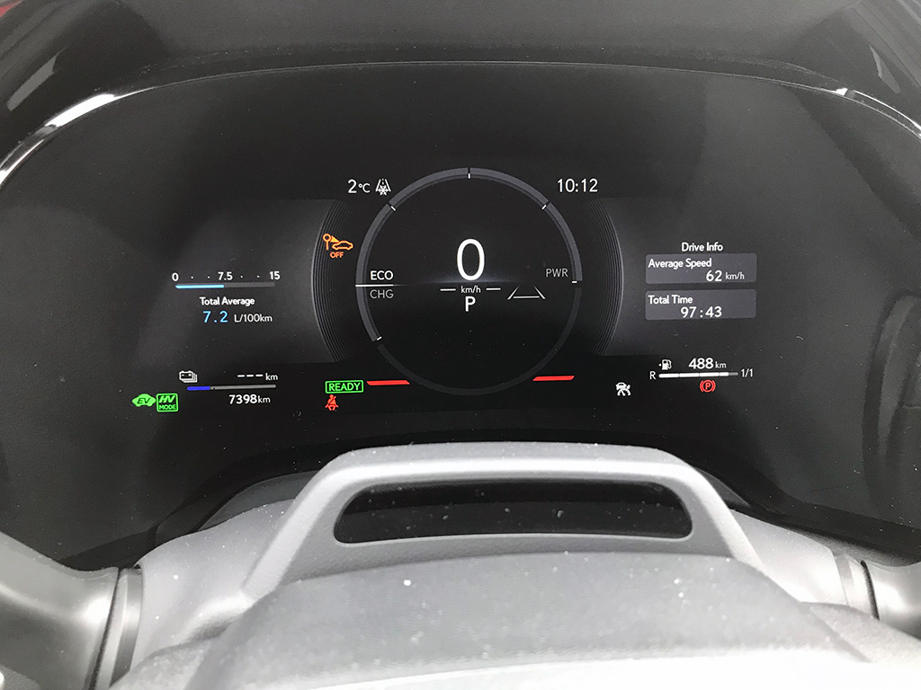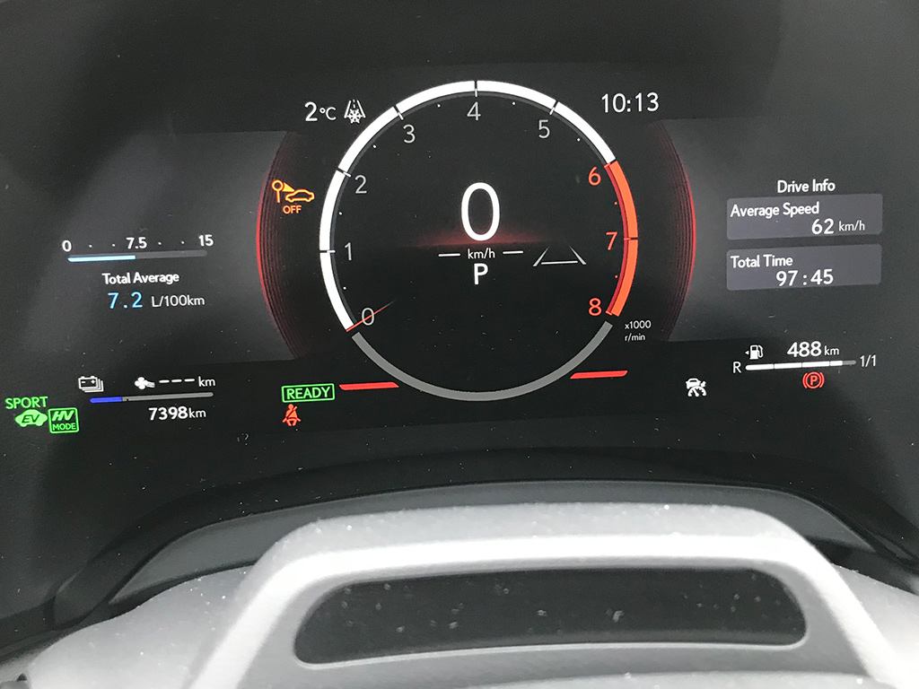 Primeramente comentar que en modo EV, el RX 450h+ no arranca el motor de combustión ni siquiera cuando pisamos a fondo el acelerador. Salvo que nos quedemos sin batería (-10%) o superemos los 135 km/h. Y siempre el RX trata de ir el mayor tiempo posible en modo eléctrico.