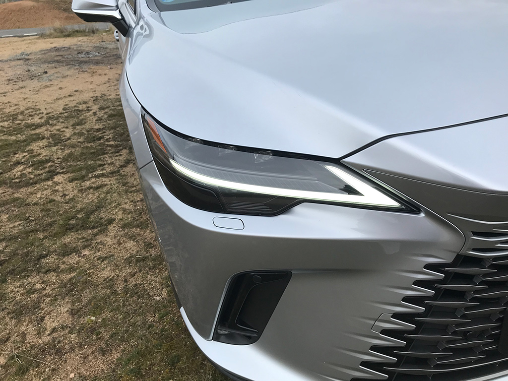 El frontal de este Lexus continúa la estética de la nueva identidad de Lexus con una parrilla en punta de flecha Spindle Grille (que es una evolución de la anterior con doble punta de flecha-denominada Diabolo), con unos faros Multi LED afilados, con luces de marcha diurna en forma de L inclinada.