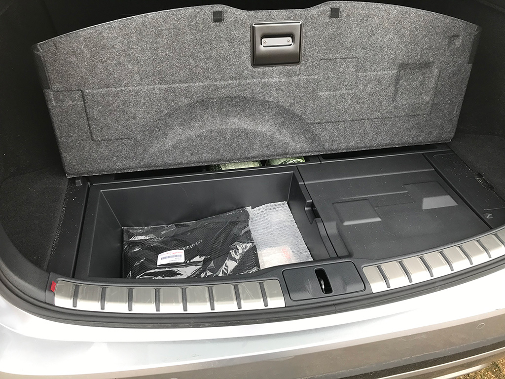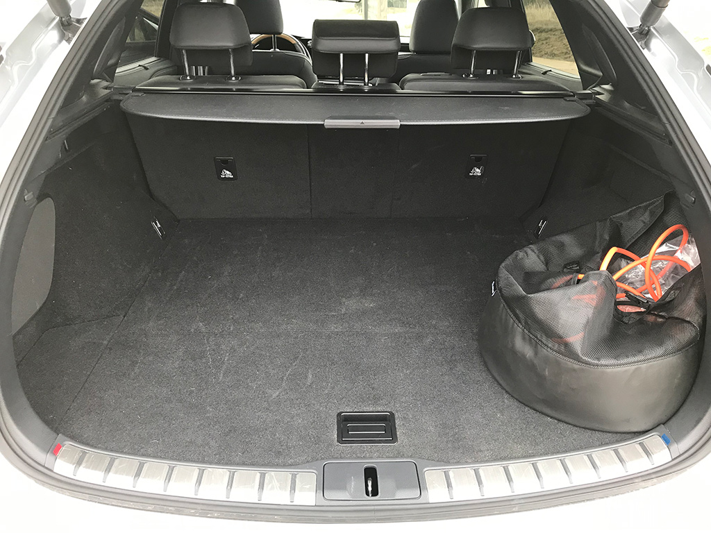 El volumen del maletero es de 461 litros de capacidad, un espacio de formas muy regulares y aprovechables, y bajo el piso, presenta un espacio compartimentado e incluso una rueda de repuesto temporal (la tapa se puede asegurar cuando está abierta mediante un gancho que incorpora). No faltan detalles prácticos como ganchos para fijar la carga, perchas o una toma de corriente de 220 voltios.