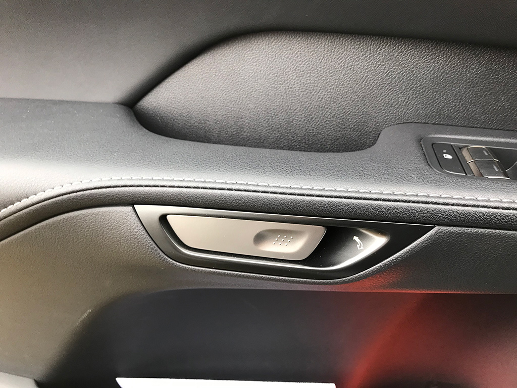Las manillas interiores de las puertas desaparecen (ahora es un botón) que incorpora el sistema de apertura de puertas E-Latch, y que incluye una función de seguridad que bloquea la apertura de la puerta si detecta que se acerca una bicicleta, un coche o una moto, evitando el posible accidente.
