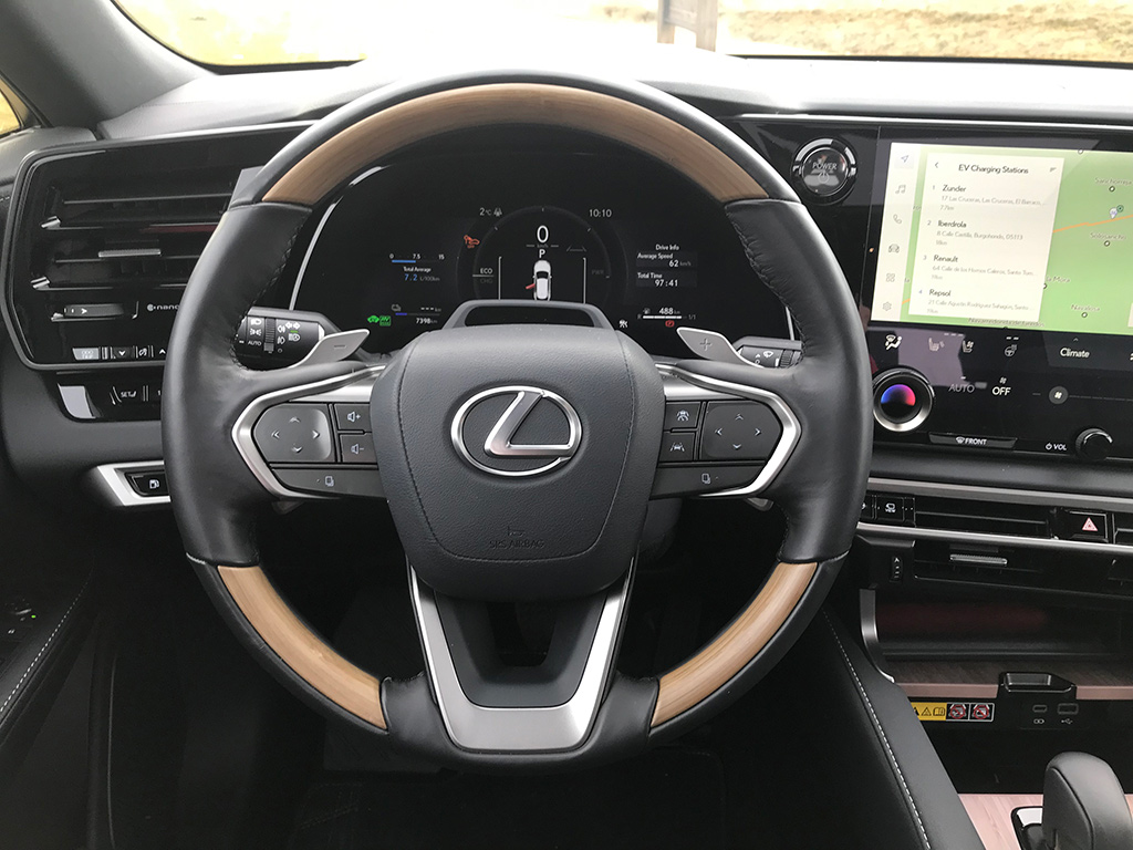El Lexus RX 450h+ presenta cuatro modos de propulsión: EV, HV (híbrido), auto HV/EV y Charge (carga la batería con el motor de gasolina hasta el 80%). A lo anterior hay que sumarle los moldes de conducción: Eco, Normal, Sport, Custom y Off-road.