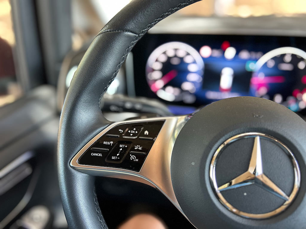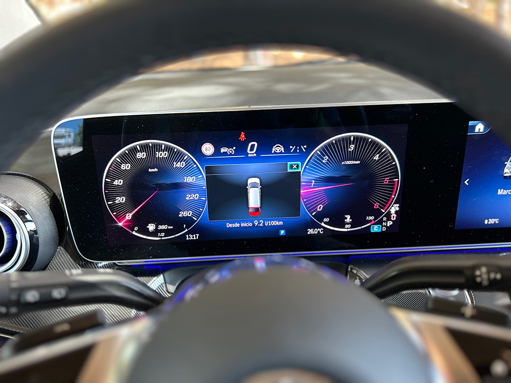 Mención para el sistema ATTENTION ASSIST; si el sistema reconoce síntomas típicos de fatiga o distracción, advierte con señales visuales y acústicas, y sugiere que te tomes un descanso. O el asistente activo de distancia DISTRONIC basado en radar mantiene automáticamente la distancia de seguridad respecto al vehículo precedente y puede facilitar la tarea del conductor, por ejemplo, al conducir por autopista o en retenciones.