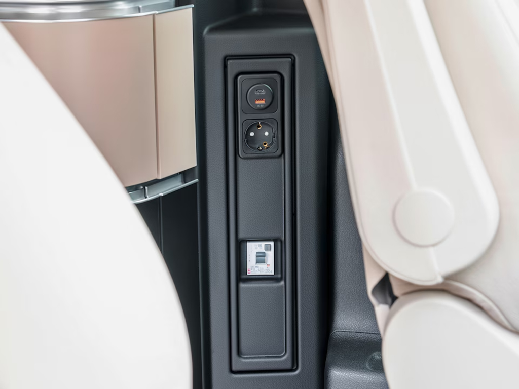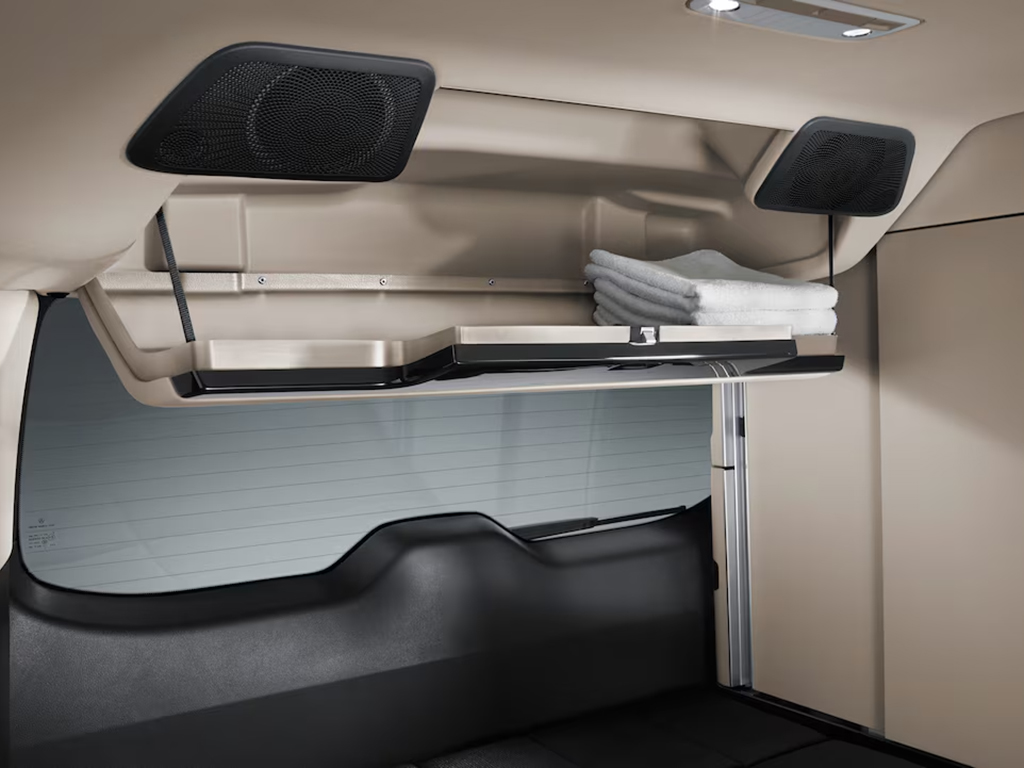 En el Clase V Marco Polo se aprovecha al máximo el espacio. Puedes encontrar huecos portaobjetos, prácticamente en cualquier sitio. Además del maletero, hay huecos en el techo, bajo la banqueta del asiento trasero, un armario con posibilidad de colgar perchas,…