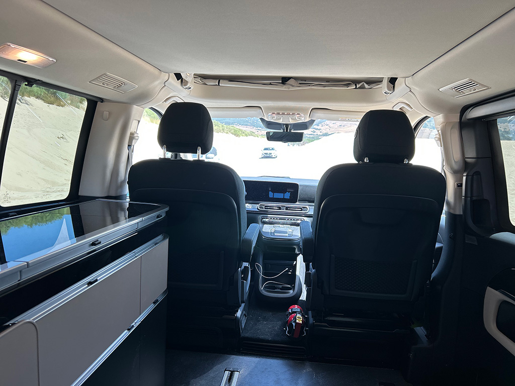 - La sala de estar es un espacio que se consigue con la segunda fila de asientos y rotando los asientos delanteros 180º. Además incorpora una mesa plegable creando un ambiente muy acogedor.