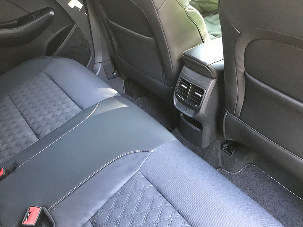 Las plazas traseras tienen buen espacio para las piernas y una altura al techo correcta. El acceso es bastante cómodo gracias a la gran apertura de las puertas. Sorprende la ausencia de reposabrazos trasero y los reposacabezas no se pueden quitar (recordar que se abate entero,no hay partición). Para mejorar el confort encontramos salidas de climatización, una toma USB y al menos en nuestra unidad, huecos para dejar objetos y bolsas tras los respaldos de los asientos delanteros.