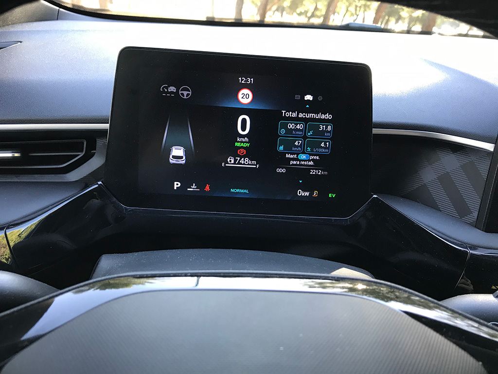 Tiene tres niveles de intensidad de la frenada regenerativa (se activan desde la pantalla táctil de 10,25 pulgadas), y 3 modos de conducción: ECO, Normal y Sport.