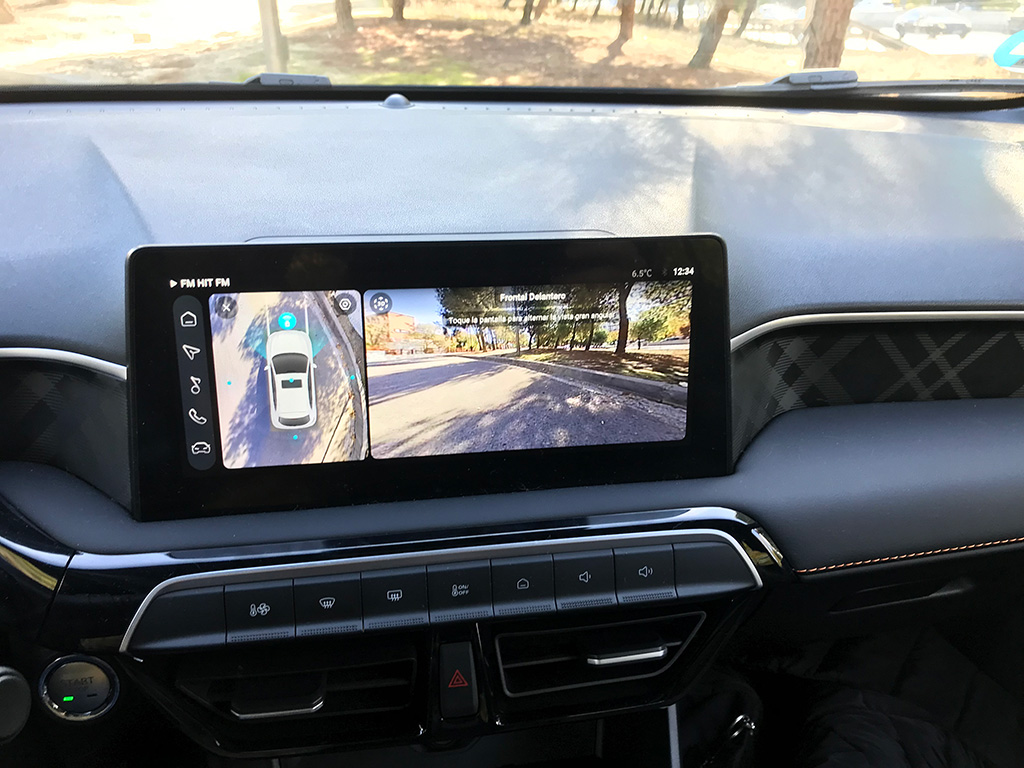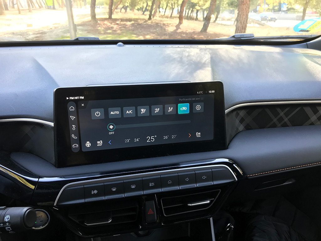 Hay un buen espacio en el habitáculo, confort, holgura, y donde predominan plásticos duros y zonas en plástico negro. Diseño juvenil, con un volante hexagonal y donde destacan dos pantallas, la digital para el cuadro de instrumentos tras el volante de 7″ y otra en el centro del salpicadero de 10,25″. Ambas muestran bien la información y no tienen menús muy complicados.