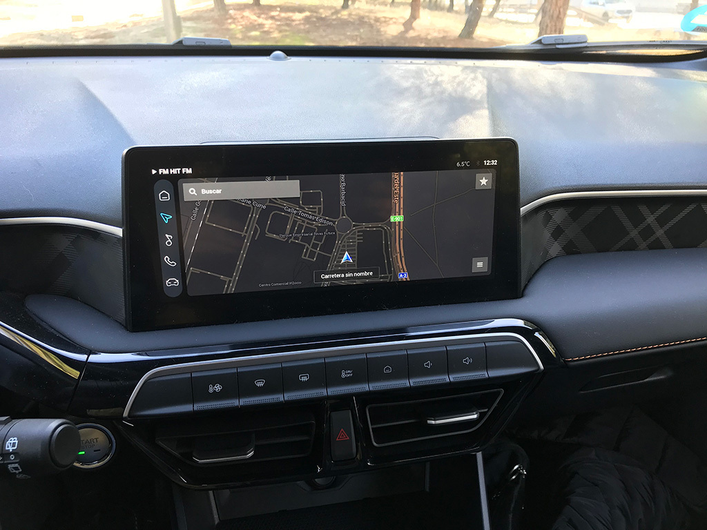 Para el cambio, se opta por un mando giratorio ubicado en la consola central, acompañado de zonas para dejar objetos, puertos de carga USB y USB-C, reposabebidas y un reposabrazos central.