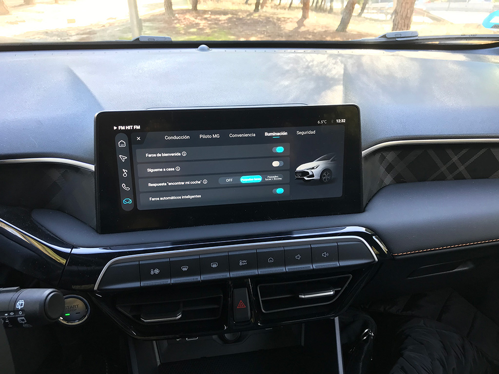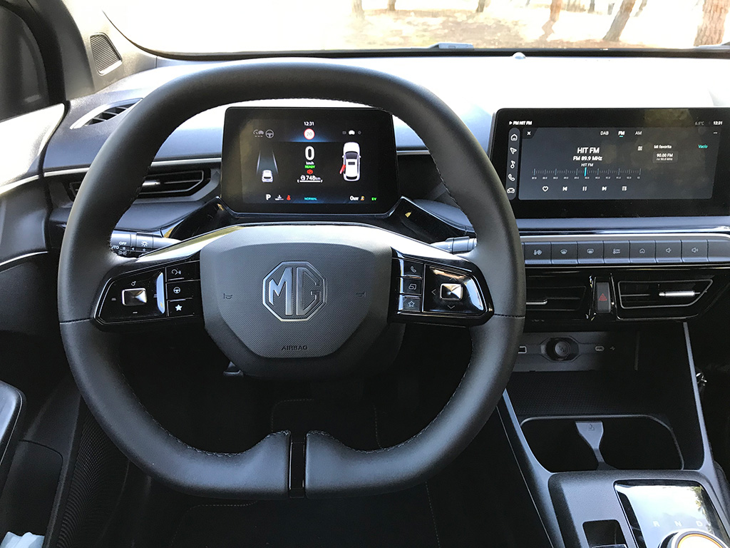 Aunque cuenta con botones de acceso directo a ciertas funciones, el MG 3 no lleva botones físicos para el climatizador. El volante (de cuero y calefactado), de forma rara, pero con buen agarre, es multifunción y cuenta a ambos lados con una especie de joystick para moverte por los menús; es fácil hacerse a su uso.