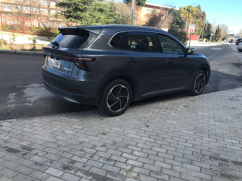 Por las circunvalaciones de fuera de Madrid, se mueve con soltura, el consume sube, pero yendo dentro de los límites permitidos y sin abusar del acelerador, pueden llegar a ser contenidos. Buena calidad de rodadura y buenas suspensiones que conllevan un confort en el interior muy agradable. Y si necesitas de fuerza, es pisarle, y el MG acelera con decisión.