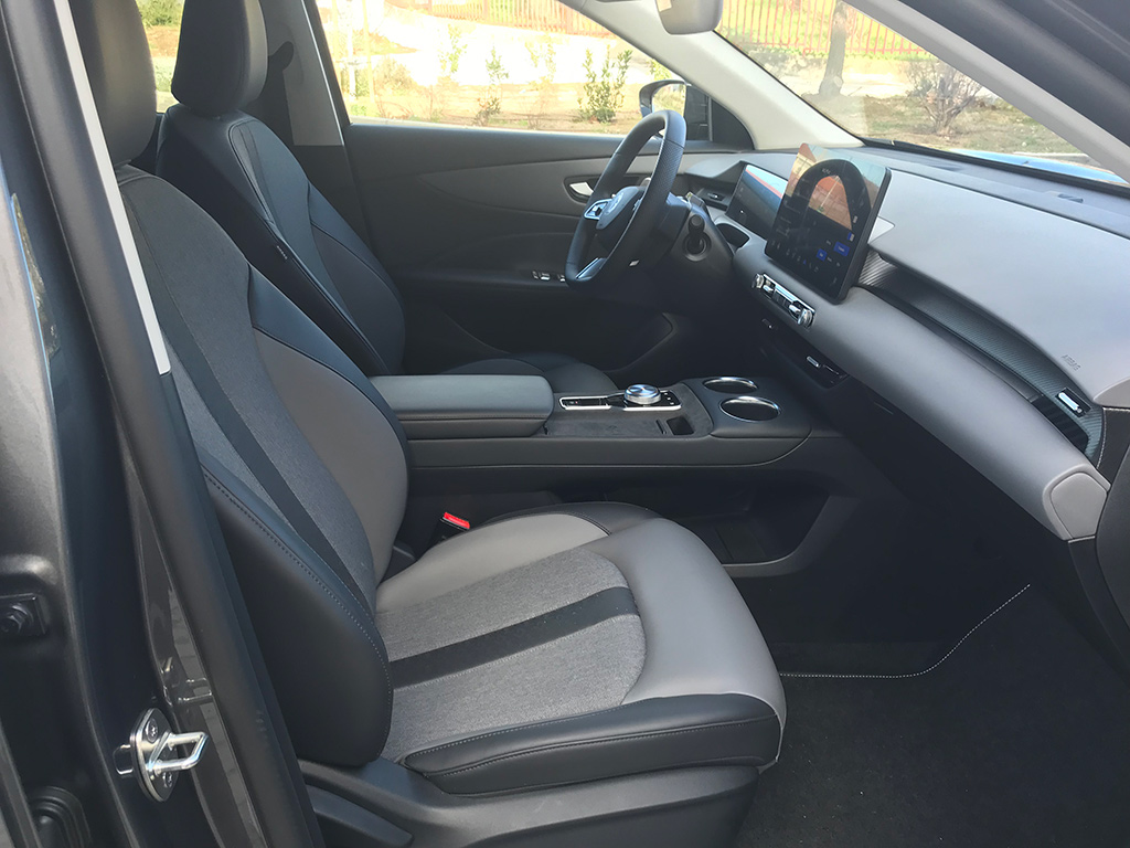 Abrimos la puerta y nos encontramos, en la parte delantera, mucho espacio, asientos muy cómodos, buen mullido y regulables eléctricamente. Una posición de conducción ligeramente elevada, con todo muy a mano y una visibilidad excelente. En las plazas traseras la sensación de espacio es aún mayor. Con un más que suficiente espacio para las rodillas, cabeza y hombros. Y es que incluso tres personas (aunque el asiento central no existe) pueden estar relativamente cómodas.