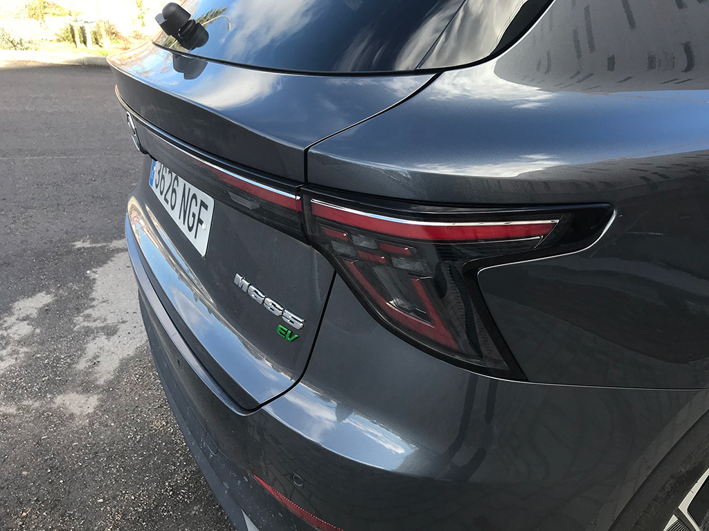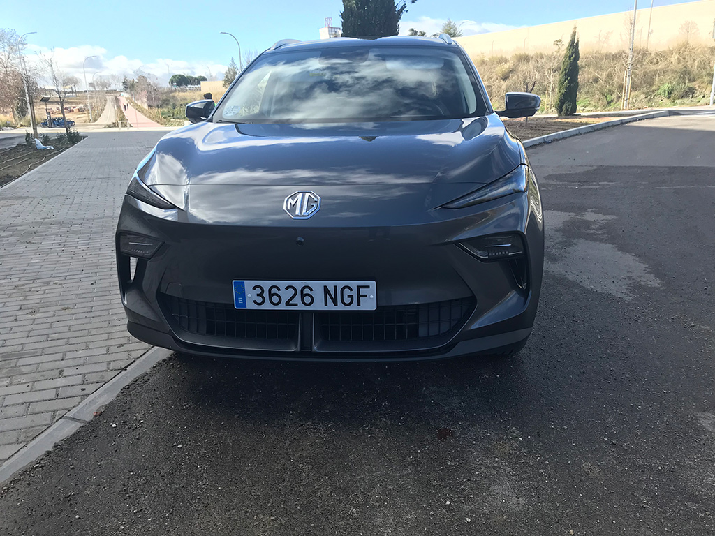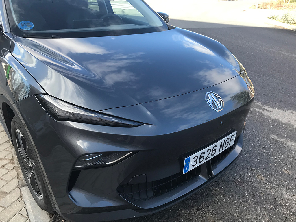 Las líneas del capó y del paragolpes, confluyendo hacia el centro, recuerdan otros modelos de MG. En este caso no hay parrilla, como es lógico, al ser un eléctrico.