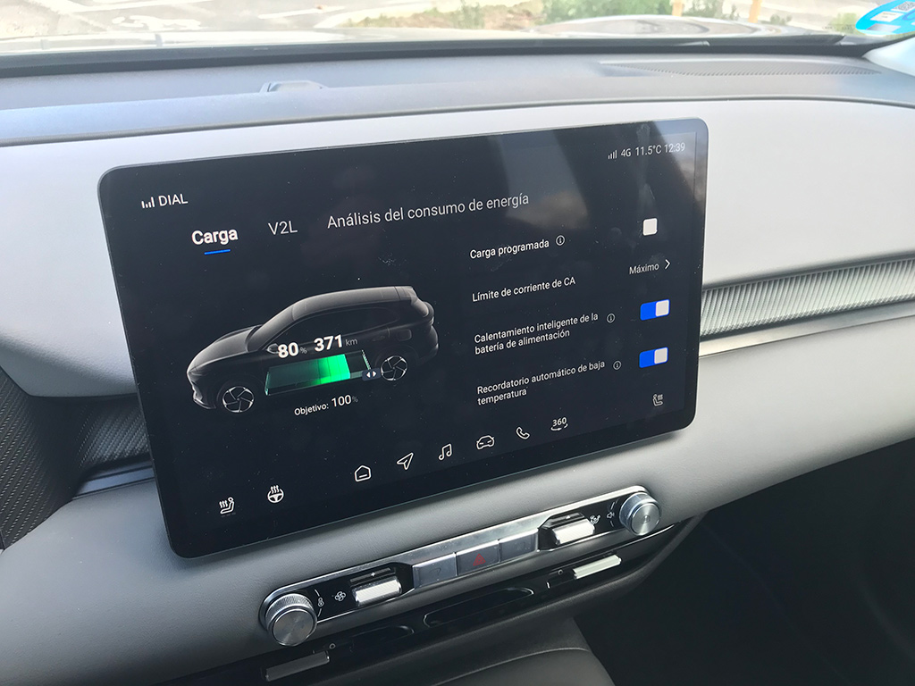 Una de las cosas que me gustan del MGS5 EV es que tiene preacondicionamiento de la batería, lo que hace que la batería se caliente de forma automática para que, cuando vayas a cargar en días fríos como los de estas semanas, esté a la temperatura óptima, te deje cargar y lo haga a una velocidad óptima.