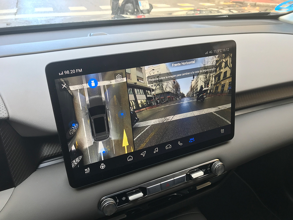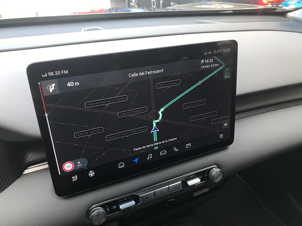 Sobre esta pantalla, comentar que nada más emprender la marcha, nos comenta como es la previsión del tiempo para ese día, incorpora navegador de serie, que funciona bastante bien, Apple Carplay y Android Auto pueden conectarse mediante bluetooth y destacar que la calidad de la proyección de las cámaras es realmente buena.