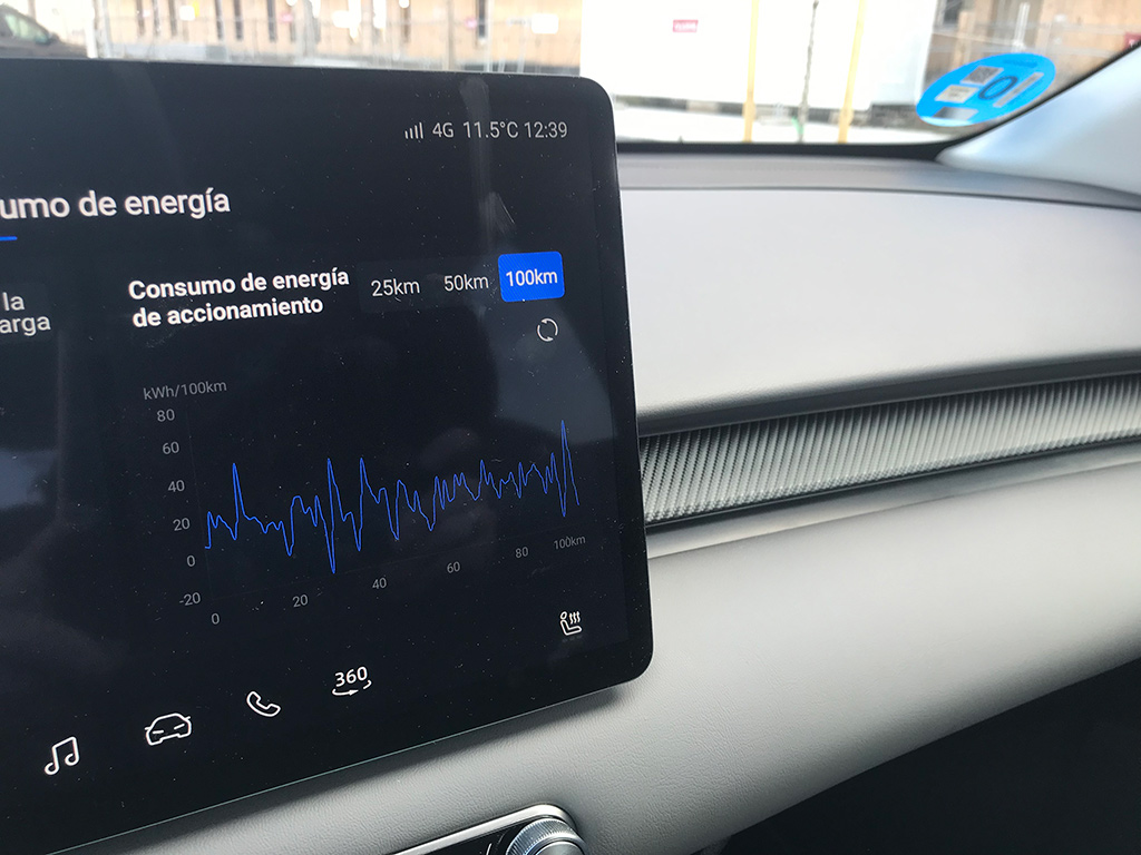 La prueba que hemos realizado durante esta semana ha consistido en un uso diario, trabajo, colegios, movimientos principalmente ciudad, y salidas esporádicas a carretera. ¿La media? Rondando los 14,5 kWh/100 km. Esto nos ha permitido superar los 400 km (por poco, eso sí), y no tener que recargar durante toda la semana.