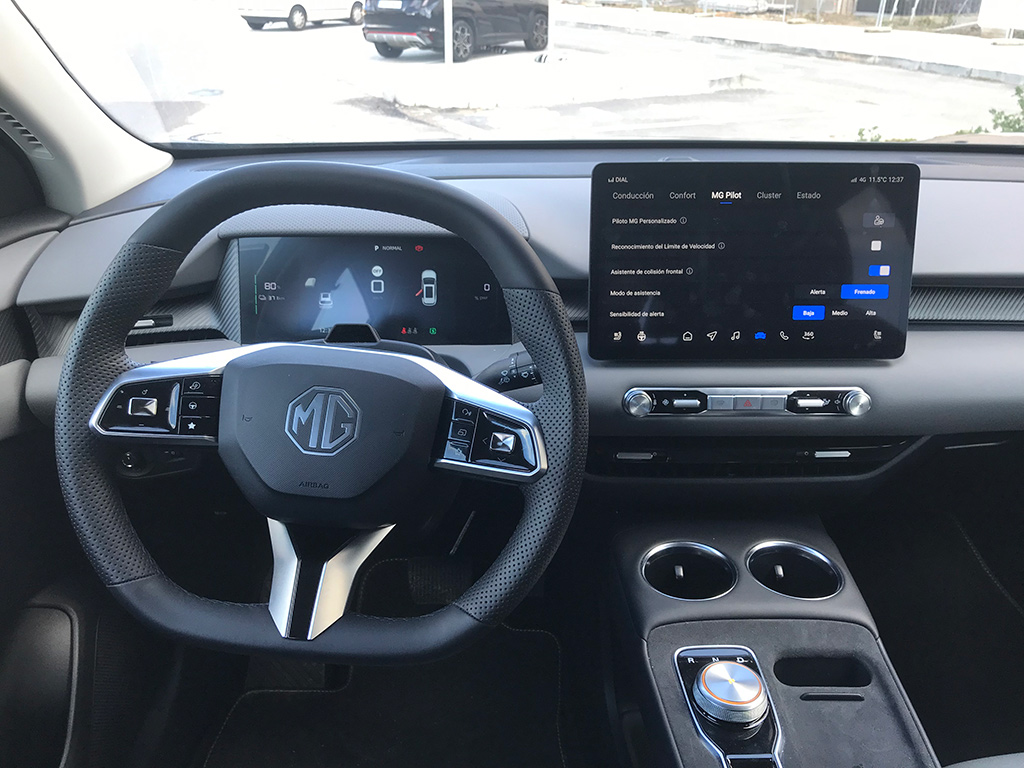 El interior del MGS5 es amplio, agradable al tacto y la verdad, bien rematado. El volante es de buenas dimensiones, con un agarre más que correcto y regulable en altura y profundidad.