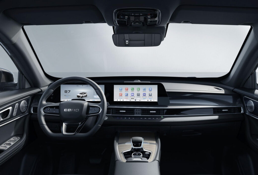 El EBRO S700 HEV incorpora de serie una dotación tecnológica y de confort propia de categorías superiores, con un habitáculo dominado por una doble pantalla panorámica de 12,3 pulgadas, conectividad avanzada y sistema de sonido SONY para el acabado alto.
