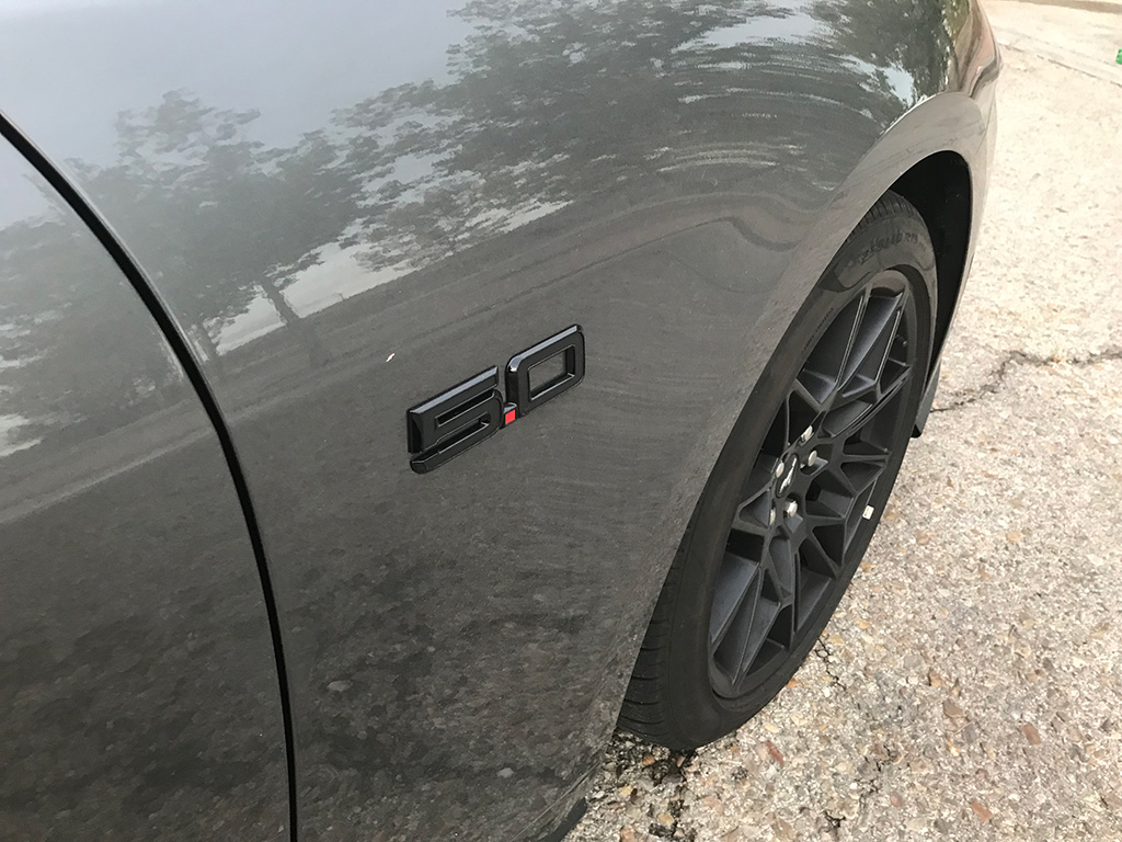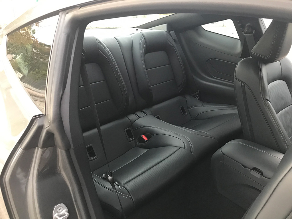 La luz antiniebla en posición central, le da un toque aún más deportivo y en el extremo inferior incorpora un difusor negro (heredado del Shelby GT500) con dos salidas de escape dobles, que le da un aspecto brutal (además de un sonido de escape brutal).