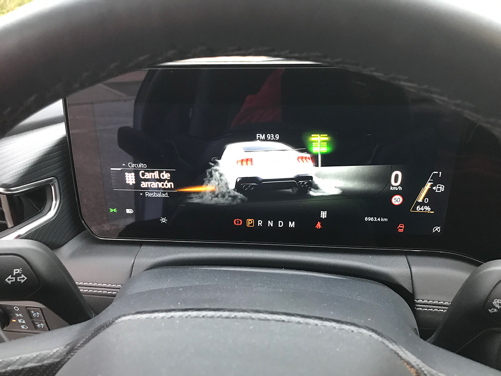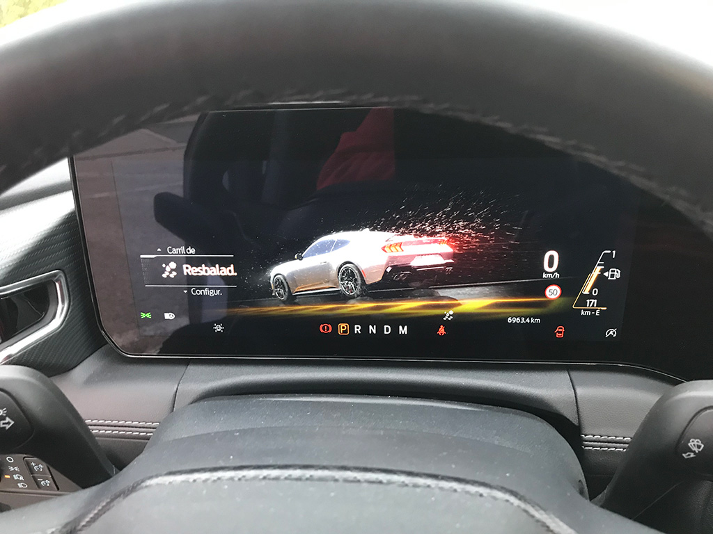 Por carretera, y poniendo el modo de conducción adecuado, se transforma. Se trata de disfrutar de un vehículo sencillamente excepcional y la mejor manera, con las manetas, donde puedes exprimir CASI todo lo que lleva dentro (en circuito es probable que lo hagas, probable), es llegar a las 5.000 vueltas (que se puede estirar hasta las 7.500) y el Mustang saca su modo más brutal (ya sea por aceleración, ya sea por el sonido que emite).