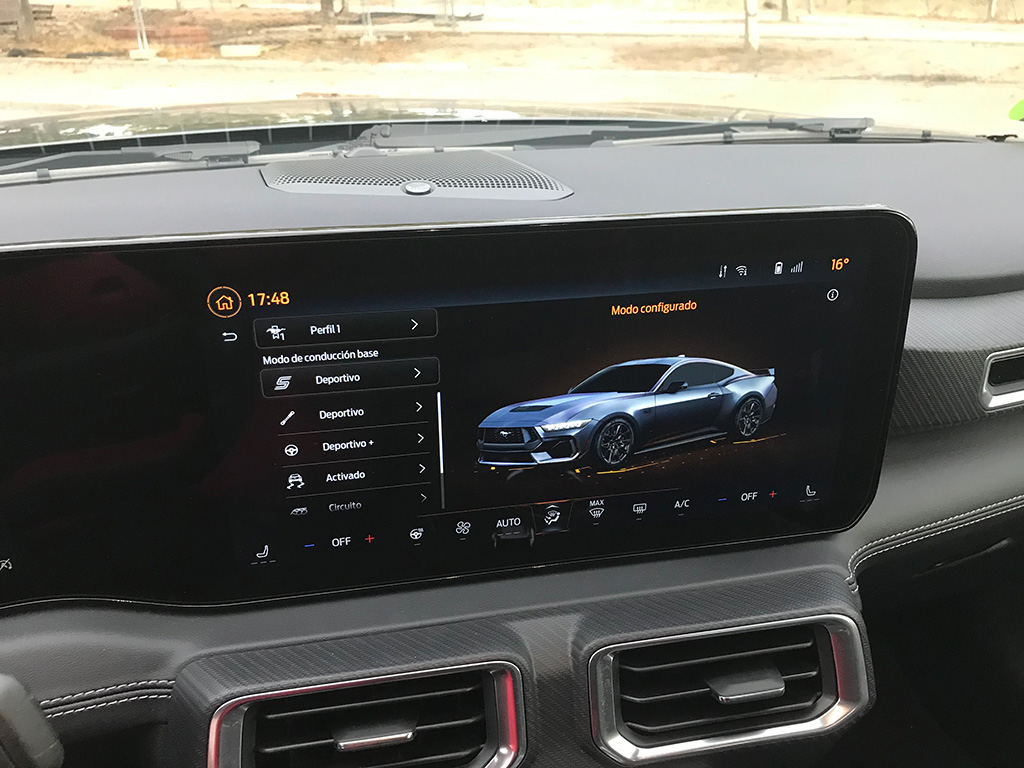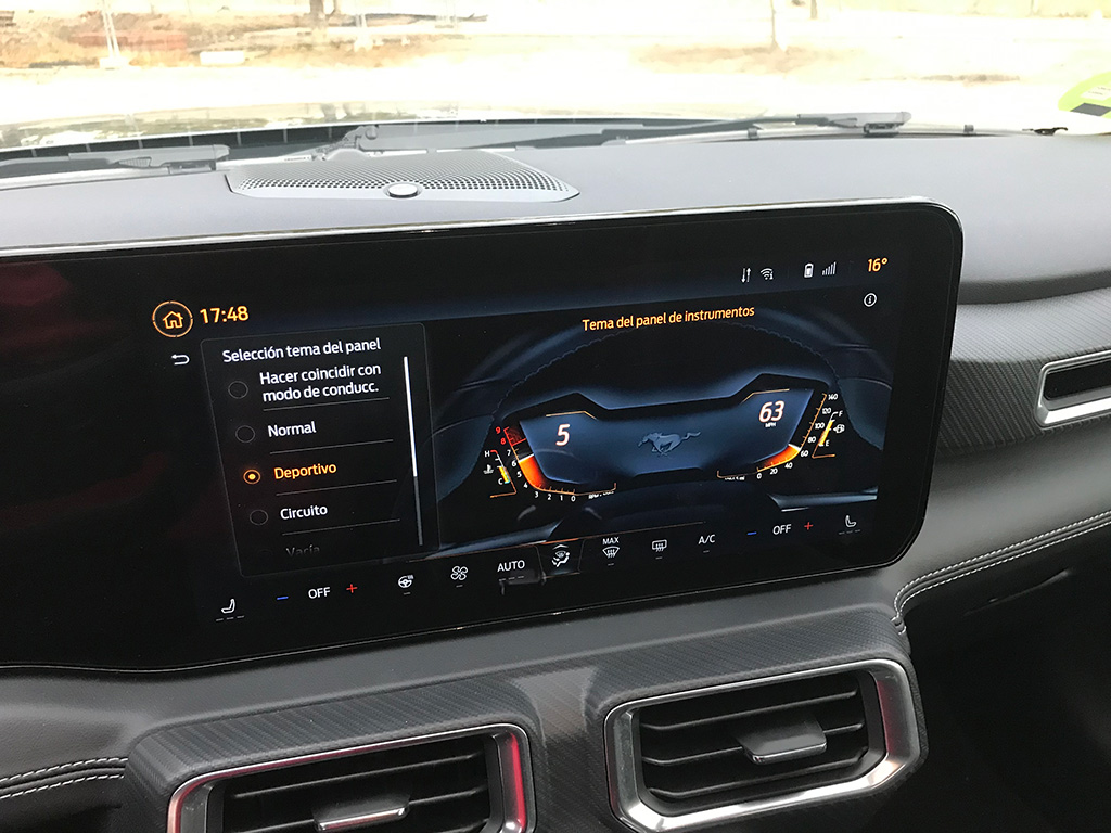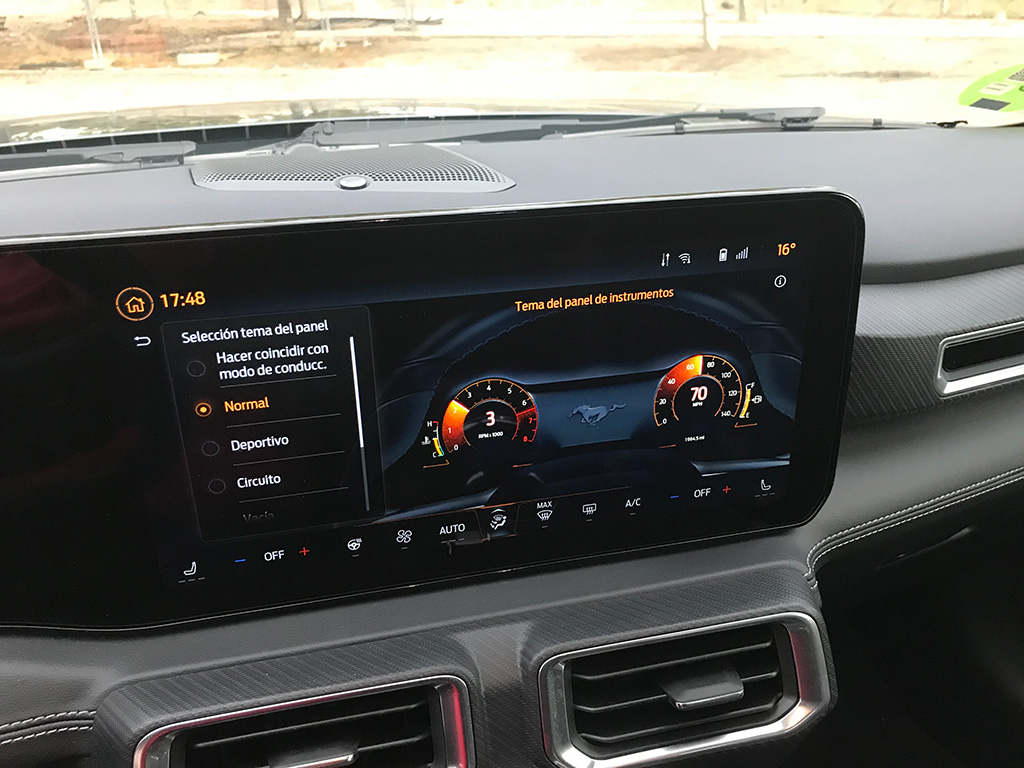 El conductor puede modificar fácilmente los ajustes a través de la pantalla central tocando y deslizando; y además Ford ha duplicado la potencia del sistema de entretenimiento del nuevo Mustang. El sistema SYNC 4 3 se adapta para mostrar las funciones que más utiliza cada conductor.