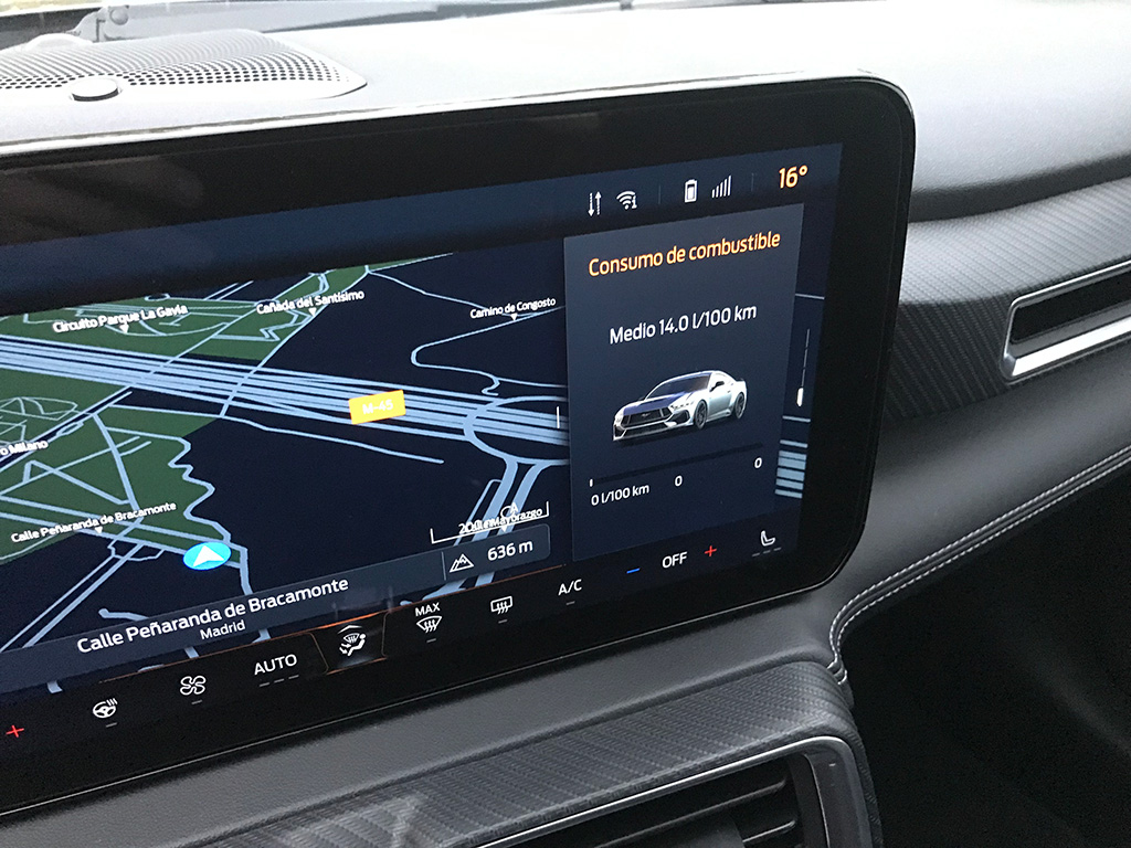Por autopista el Mustang cumple más que sobradamente, el aislamiento y confort interior, unido a un equipo de sonido B&O sencillamente genial, hace que vayas muy a gusto. También facilita el confort, que las suspensiones no sean excesivamente duras (modo normal).
