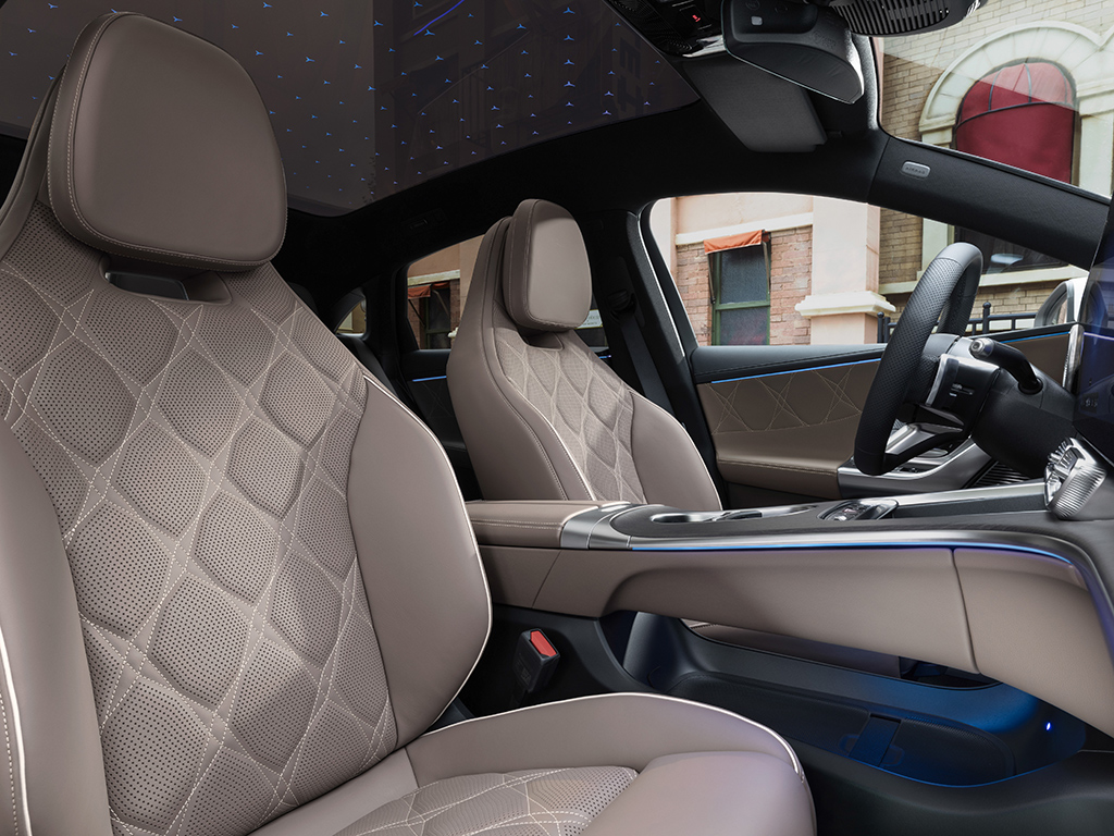 Calidad y artesanía en cada detalle definen la nueva Clase C eléctrica, que lleva la sensación familiar de «Bienvenido a casa» a un nivel completamente nuevo, estableciendo un nuevo estándar en calidad y confort premium. Formas fluidas, materiales refinados de la más alta calidad artesanal, incluyendo un interior vegano certificado, detalles perfectamente ejecutados como el diseño de cuero Nappa Twisted Diamond y un confort acústico excepcional crean una atmósfera única que atrae a todos los sentidos. Los nuevos asientos eléctricos de alta gama permiten a los ocupantes ofrecer soporte lumbar, masaje, ventilación en los asientos y sonido 4D.