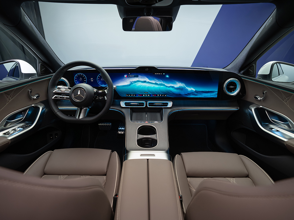 Alta tecnología en una clase propia para una experiencia acogedora e inmersiva: el MBUX Hyperscreen de 39,1» creando una experiencia integral de conducción y espacial. La innovadora tecnología de retroiluminación matricial, con más de 1.000 LEDs individuales y zonas de brillo ajustables de forma independiente, ofrece información clara para el conductor y entretenimiento personalizado para el pasajero delantero.