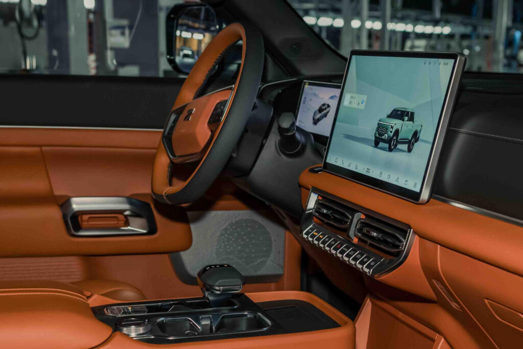 La electrónica permite hasta 8 modos de conducción y cuenta con el modo “giro de tanque”, con el que en conducción con 4×4 con reductora, cuando se gira el volante completamente, bloquea la rueda trasera interior para girar en espacios muy reducidos. Además, cuenta con un control de crucero off-road para superar obstáculos a velocidades ultra bajas.