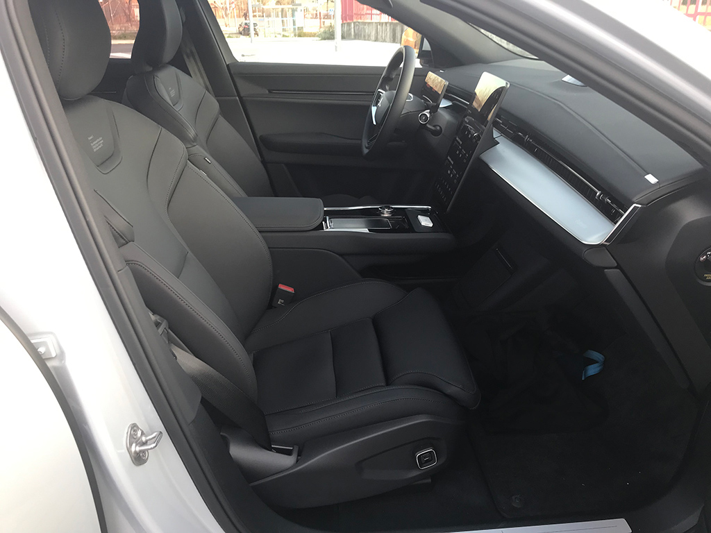 El Polestar 3, con uns distancia entre ejes de casi 3 metros, tiene un interior muy espacioso, con mucho espacio tanto para piernas, como hombros, como cabeza.