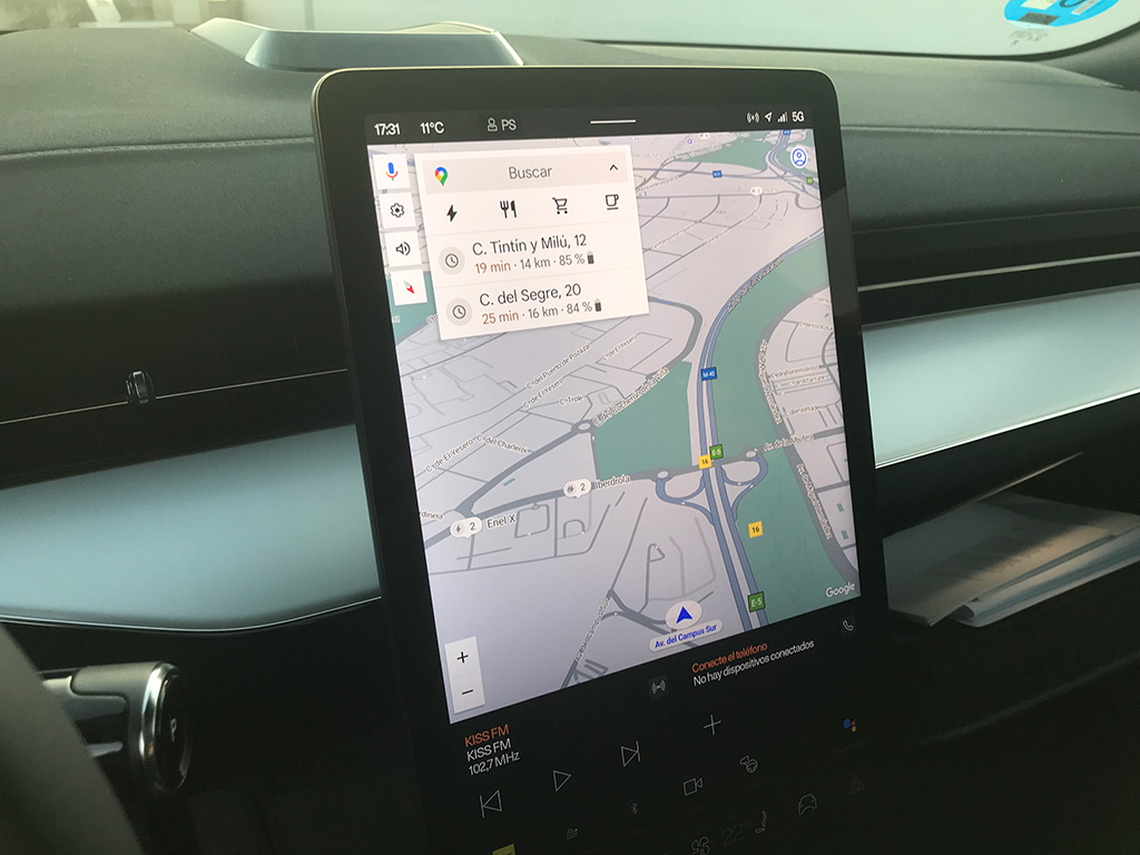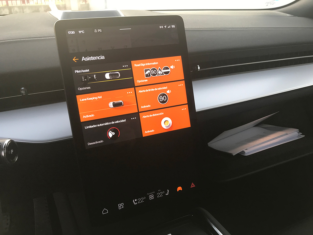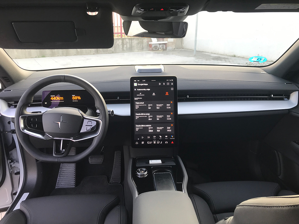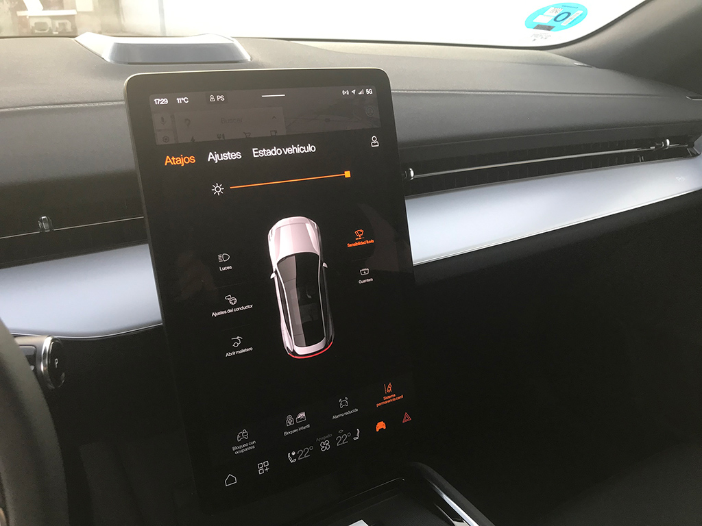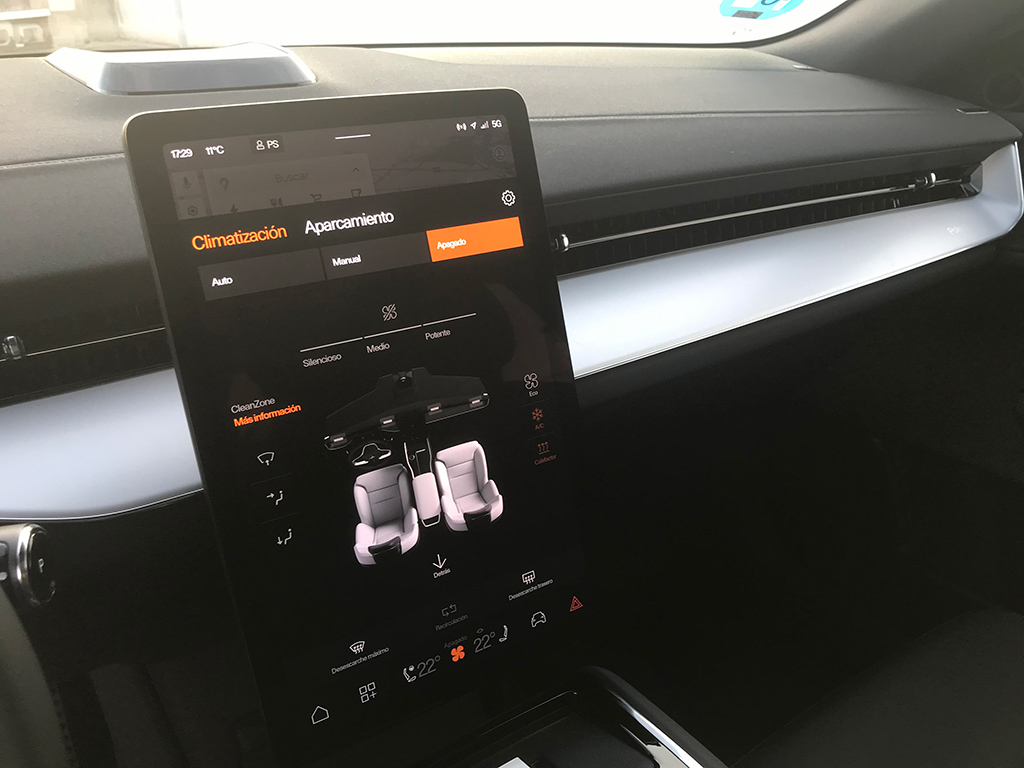 En el centro del salpicadero, el protagonista es una enorme pantalla táctil vertical de 14,5 pulgadas con las principales funciones del coche. Una pantalla con una muy buena calidad de visión, sistema de infoentretenimiento con Android Automotive OS, que incluye Google Assistant, Google Maps y Google Play y que se mantiene siempre al día gracias a las actualizaciones remotas (Over The Air, OTA).