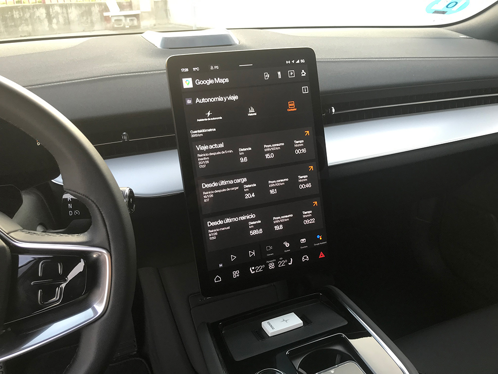 La primera parte de la ruta, por autopista y por carretera, el consumo se nos fue de cerca de 24 kWh/100 km. Poco más de 400 km. Eso sí realizando una conducción real, ni buscando eficiencia, batir récords de consumo.