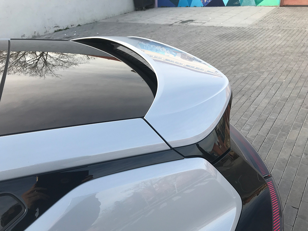 Respecto a la trasera, dos faros en forma de C conectados entre sí por la parte superior, es difícil no ver ahí algo de Volvo; Además un spoiler en la parte superior, un corte bastan recto y unas superficies ensanchadas, le dan un aire musculoso y deportivo.