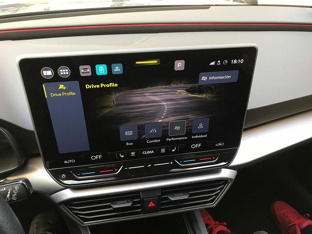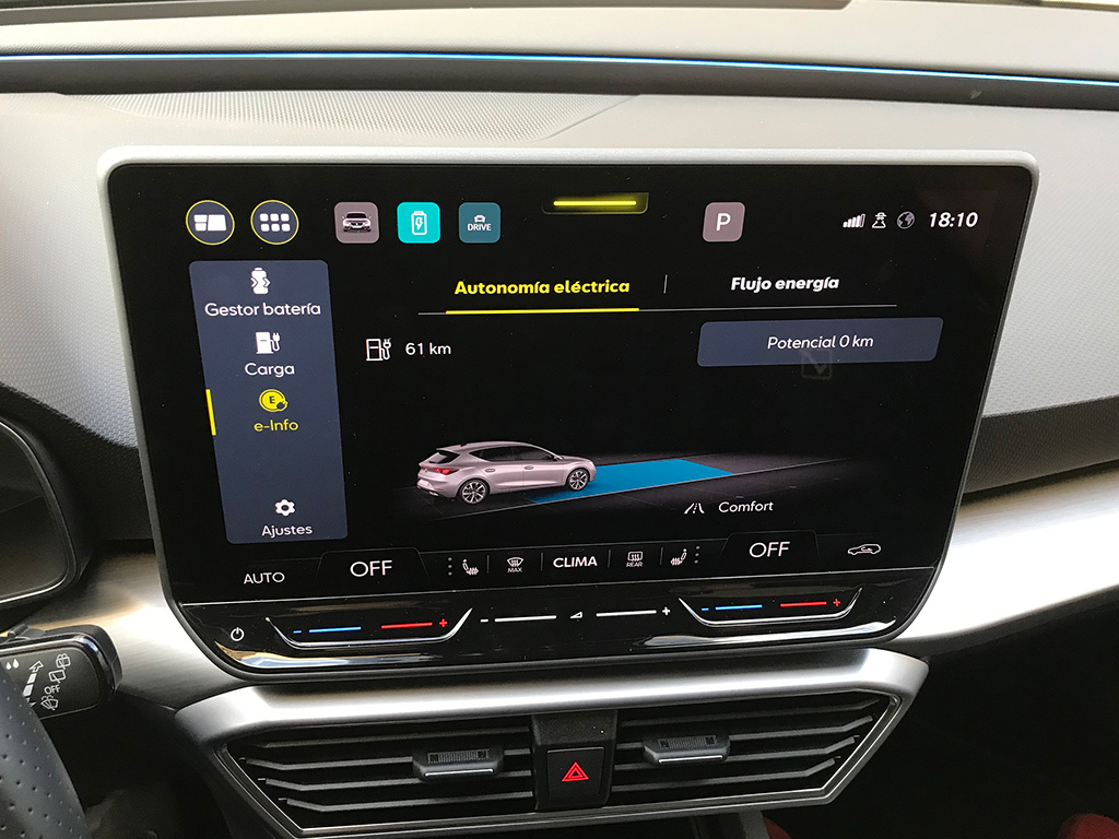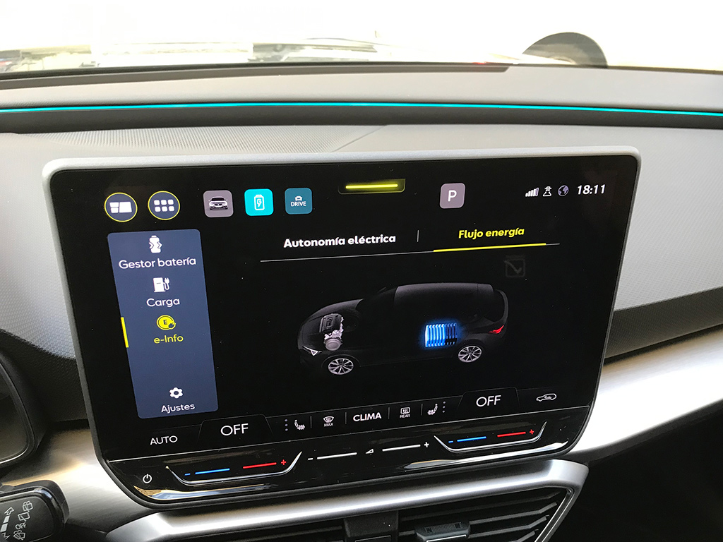 El León e-HYBRID permite elegir entre dos modos de propulsión: Híbrido y Eléctrico. Una gestión que se puede hacer manualmente a través de la pantalla central, pero también se puede optar porque el coche lo gestione de forma automática.
