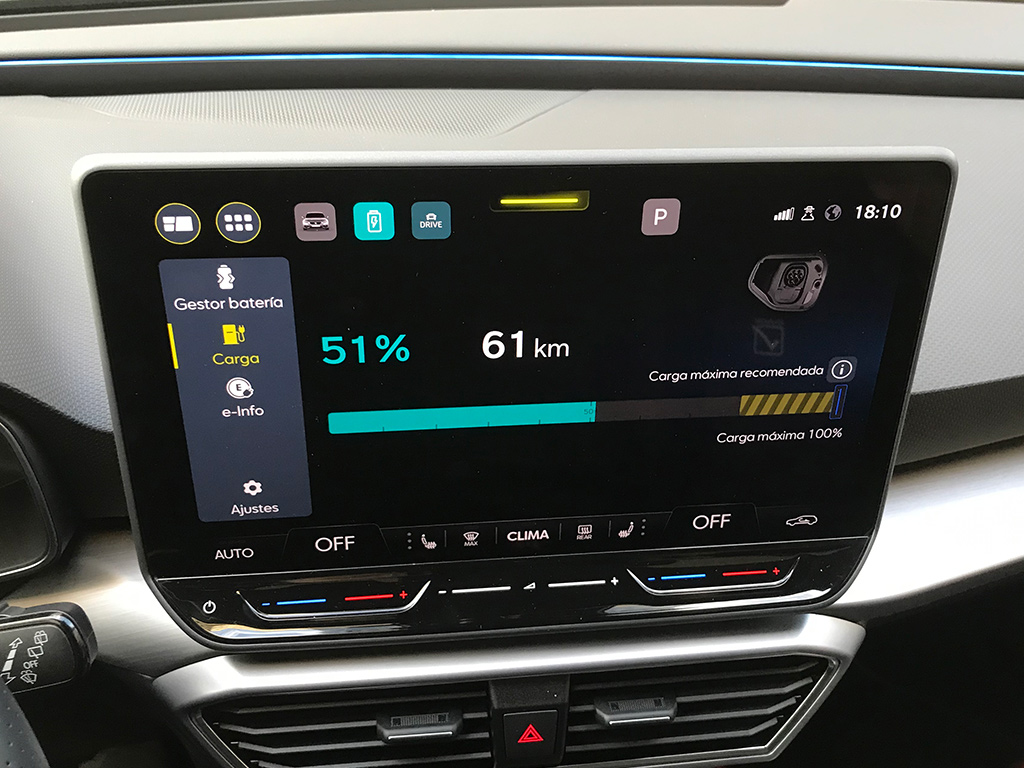 Esta versión e-HYBRID tiene funcionalidades en remoto, específicas a través de la app ‘My SEAT App’, como el control de la carga de la batería y del climatizador.