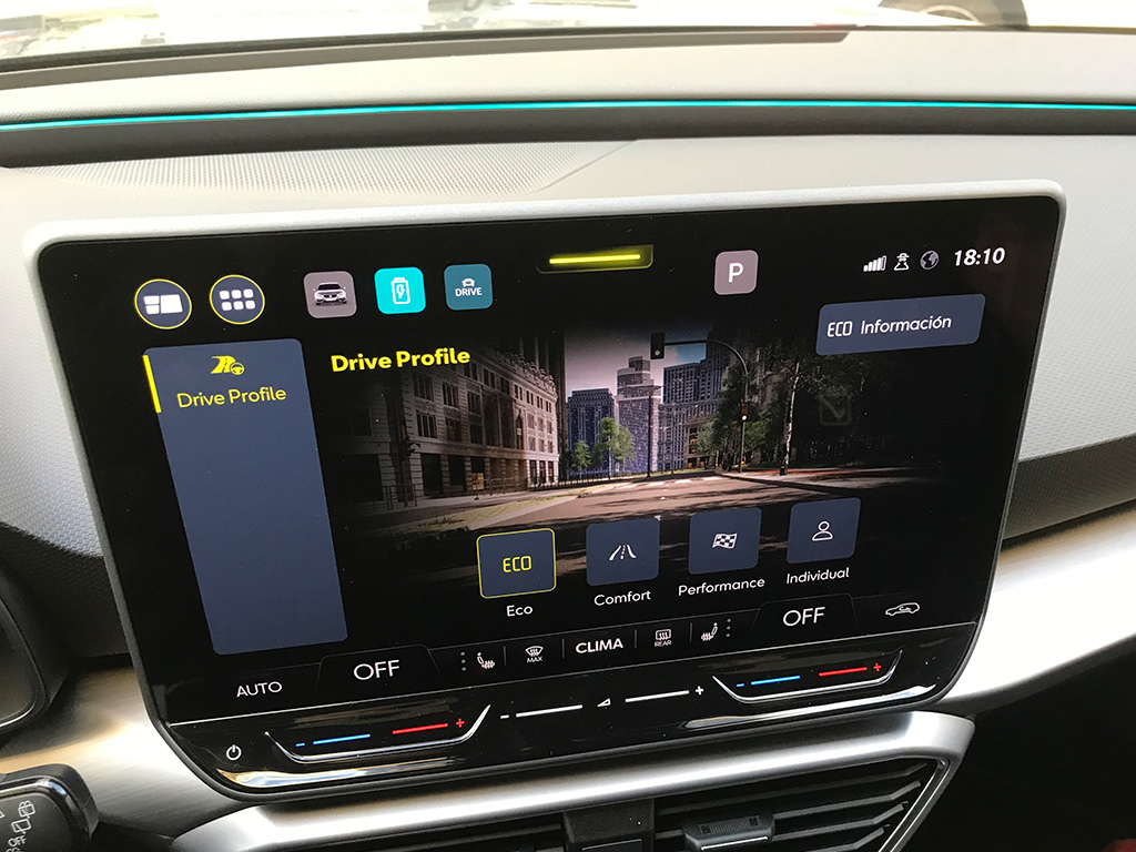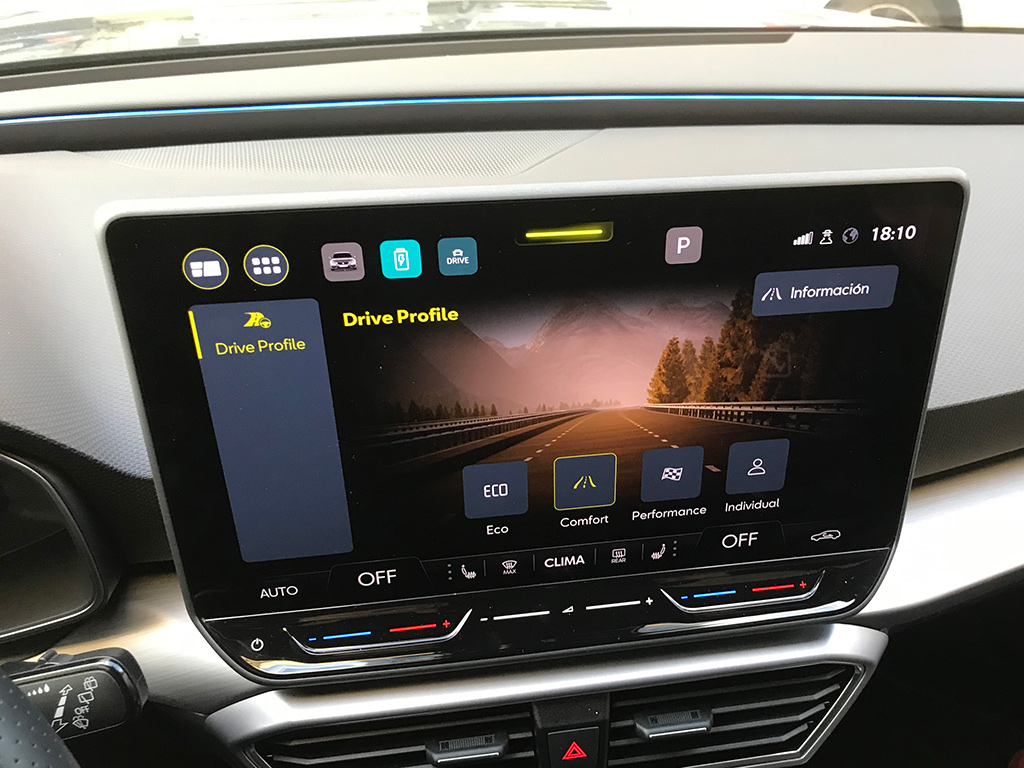 Para completar, tiene los modos de conducción: ECO, Comfort y SPORT, siendo el modo Comfort es el más adecuado para la conducción diaria, el Sport, para una conducción más firme por carreteras reviradas y exprimir su potencial y el modo ECO para una conducción muy tranquila.