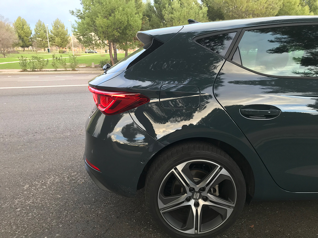 El diseño del SEAT León ha ido mejorando con los años, siendo cada vez más atractivo y atrayendo cada vez a un público más diverso. Nuestra unidad con el acabado FR es el tope de gama. Un vehículo que incorpora faros Matrix LED, unas espectaculares llantas de aleación bicolor de 18 pulgadas con neumáticos 225/40.