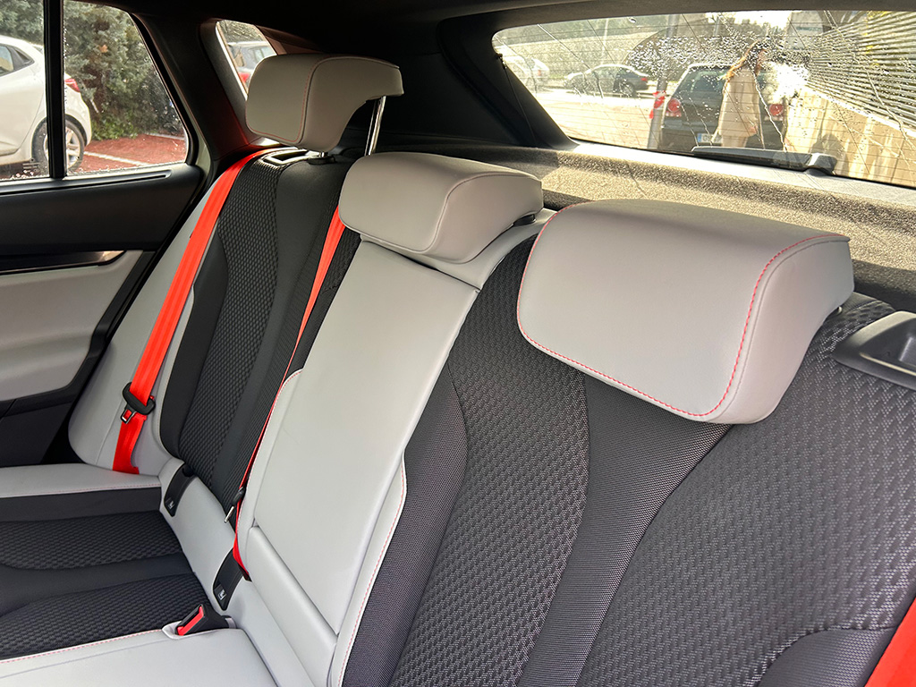 Pasamos a la parte trasera y tiene sus claros y oscuros. Si bien tengo que destacar la comodidad del acceso a estas plazas, el confort a bordo gracias a la climatización, calefacción de asientos o las tomas USB, y la habitabilidad, con un espacio más que de sobra, para las piernas y la altura al techo para personas muy altas. En contra encuentro esa consola central hace que la parte trasera, sea para 2.